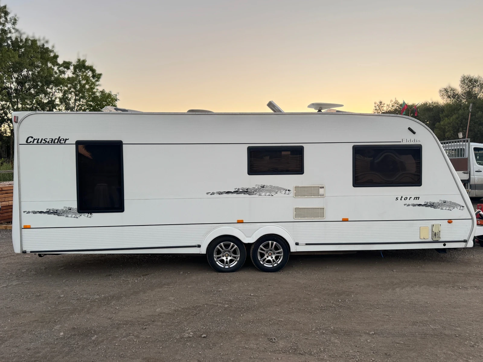 Продава се ! Супер ГОЛЯМА и ПРОСТОРНА , четири - пет местна каравана а именно : ELDDIS STORM КРАЛСКА СПАЛНЯ Година на производство - 2006 г. Регистрирана с всички документа за ЕКСПОАТАЦИЯ / застраховка , преглед / Перфектния избор за позициониране на някое крайбрежие ! С външни изводи за ТОК , ВОДА и ГАЗ , алуминиеви джанти , анти вибрационен теглич с двойно заключване , 2 извода за ток към автомобил , три броя люкове / двата панорамни и един с вентилатор играещ ролята на климатик и вентилация / , Ново поколение антена с всички инсталации за ТВ система , микровълнова печка , Аларма за газ и движение . От вътре караваната е изключително запазена , свежа , без миризми , влаги и тем подобни ! ! ! Супер ПРОСТОРНА с НАЙ-ДОБРОТО разпределение а именно - отпред е разположен големия диван с маса , който се превръща в просторна спалня , по средата е кухненският бокс който е с работещи уреди като - хладилник с голяма камера , готварска печка с грил и фурна , 3 газови котлона , мивка , отоплителна печка с вентилатор и въздоховоди във всички части на караваната + извод за форселта , работещ 10 литров бойлер + допълнителен вътрешен съд за вода ! Банята и тоалетната са две отделни помещения които ги правят изключително големи и удобно ! ! ! КРАЛСКА - спалня супер голяма . Всички уреди работят на ТОК 12/220 и ГАЗ ! Разполага със всичко необходимо за къмпингуване / ГОЛЯМ ФОСЕЛТ ПЪЛЕН КОМПЛЕКТ съдове за чиста и мръсна вода , удължител за ток + преходник , крик и ключове за гуми , подложки за позициониране с повдигачи , ГОЛЯМА бутилка за газ , ДВЕ помпи за вода ВЪНШНА И ВЪТРЕШНА , вграден чейнджър за зареждане на акумулатора докато се използва на 220 волта . На всички прозорци , врати и люкове има щора/перде и комарници в перфектно състояние ! Има безброй шкафчета за съхранение на багаж , като някой от тях са оборудвани със стойки за чаши, чиний, шишета и други ! Има аудио система със СД ! Заповядайте на оглед по всяко за вас удобно време , намира се в гр. София ! За повече информация на тел : 0 8 9 3 6 6 1 6 8 6