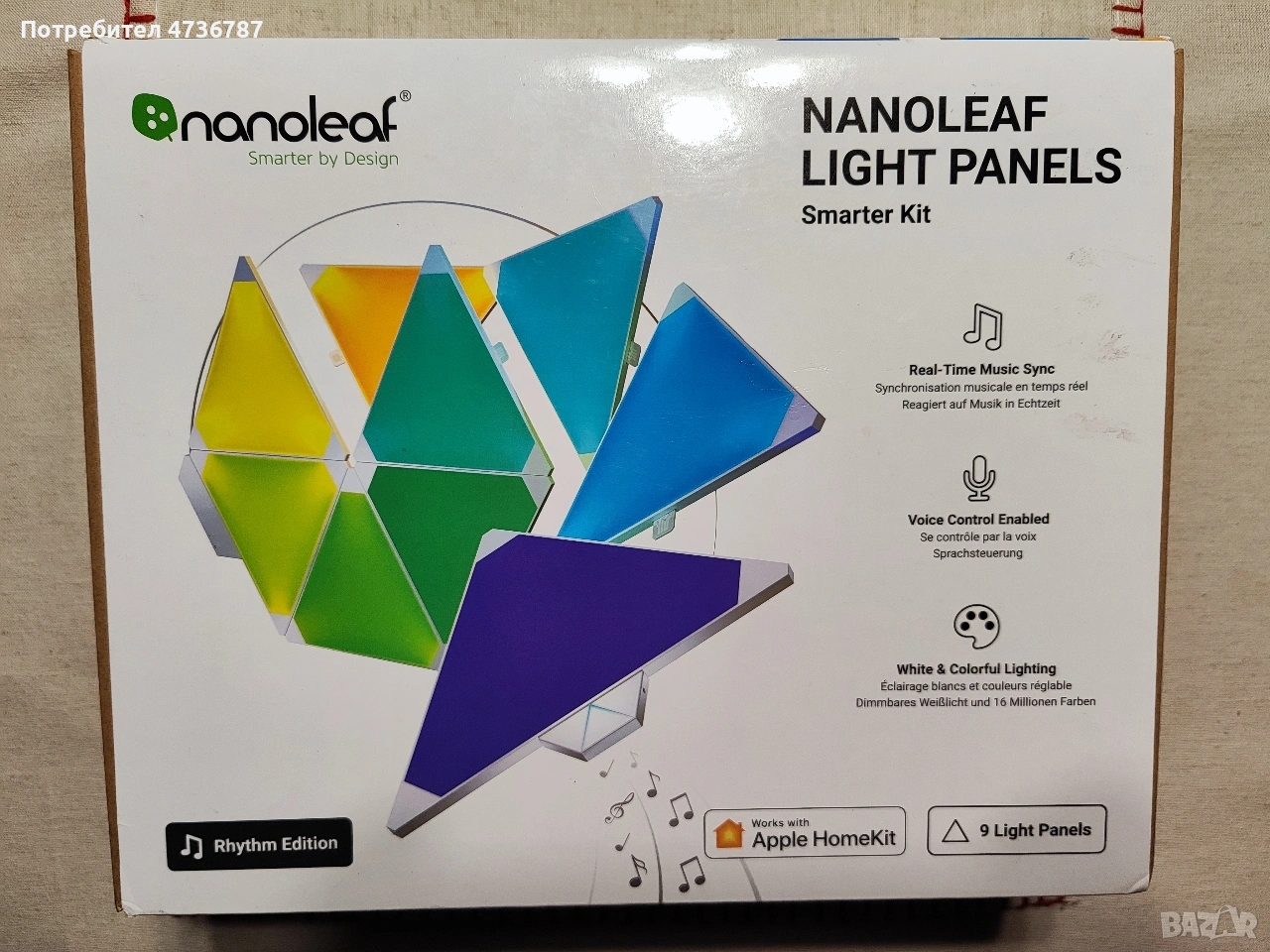 Чисто нов запечатан комплект,с 9 бр.тиъгълника!!!!Nanoleaf Shapes Hexagons!!!!?Най-доброто иновативно смарт осветление на пазара!!!!Без еквивалент!!!!Купен и не използван за 450лв!!!!!!!!