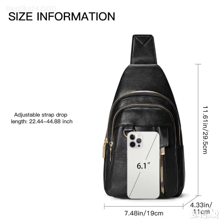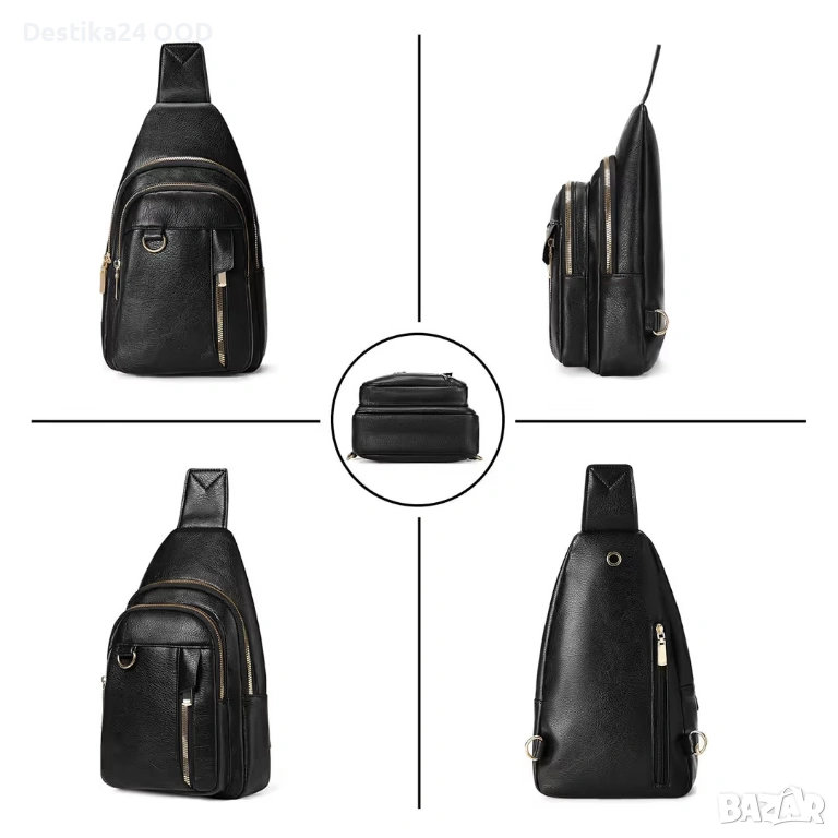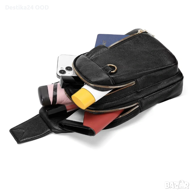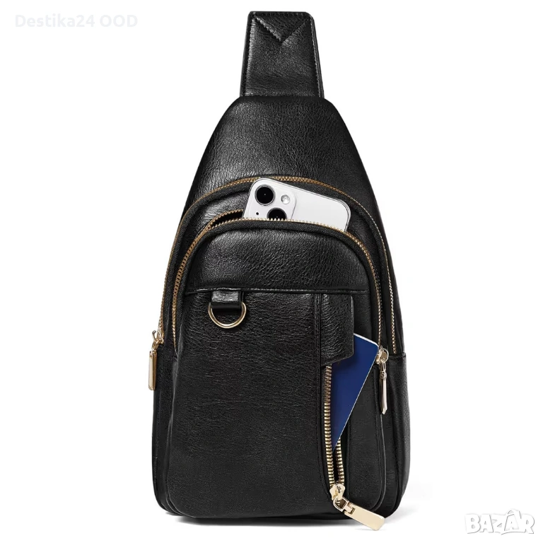 Чантата е изработена от здрав полиуретанов материал, който е устойчив на износване и лесен за почистване. Предлага удобно разпределение на пространството за телефон, портфейл, документи и лични вещи.