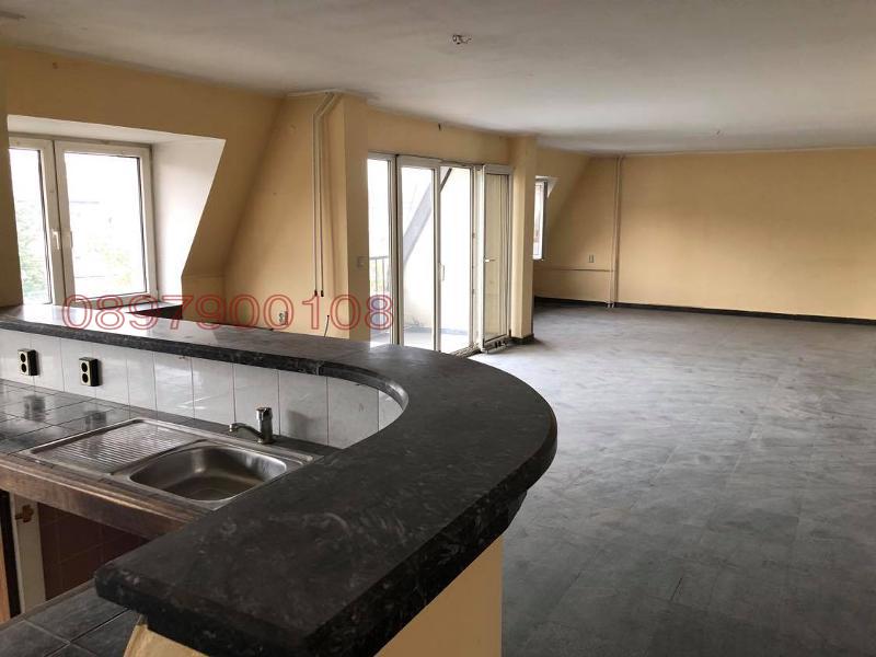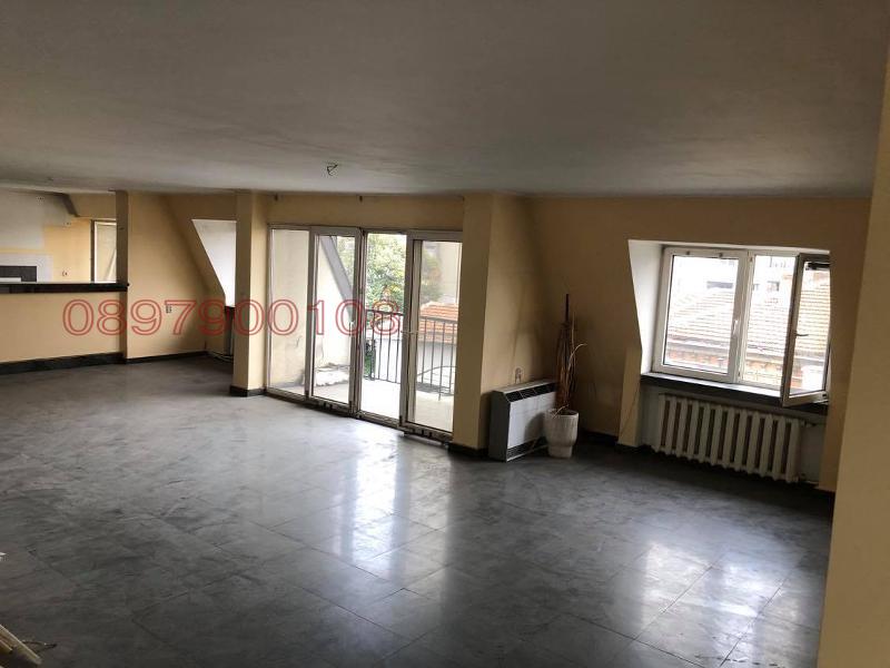ТОП ЦЕНТЪР, на метри от пл.Света Троица. Апартаментът е в добро състояние, с ал.дограма, подовите настилки са основно гранит на първо ниво, паркет и ламинат на второ.Първо ниво:огромен дневен тракт, около 120 кв.м. с обособена кухненска част и с възможност на изграждане до две спални по желание на обитателите, баня с тоалетна, балкон.Изглед към пл. Света Троица.