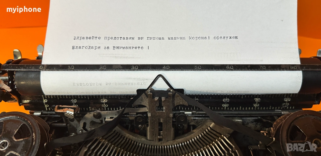 „Пишещата машина е обслужена, смазана, има нова лента и работи. Има липса на буква на едно от чукчетата ! Може да се прати клип как работи ! Работим с Еконт 10 % Отстъпка от цената на доставката ! Изпращане същия ден като на другия ден е при вас с опция преглед и тест ако е възможен такъв, допълнително договаряне за друг ден за доставка. Нужни данни за поръчка 1. Име и Фамилия 2.Телефонен номер 3.Град и Офис на Еконт до който искате да се достави или точен адрес за доставка до дома ви / За София възможно взимане от място след уговорка / Изпращане с Еконт / Доставяне от нас в рамките на София Цена 15 €.