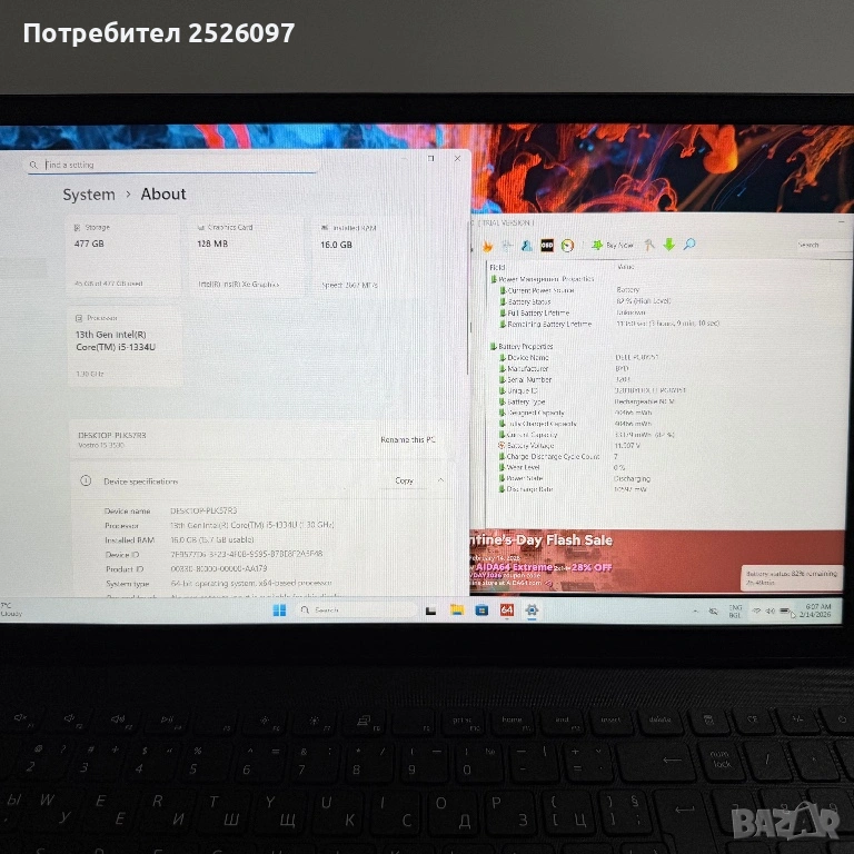 Предлага се с оригинално зарядно и инсталиран Windows 11,готов за употреба.