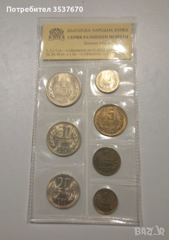 БНБ пълен сет Български разменни монети 1962 г → Обява 53473467