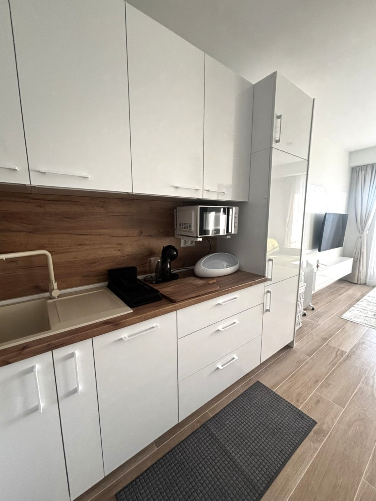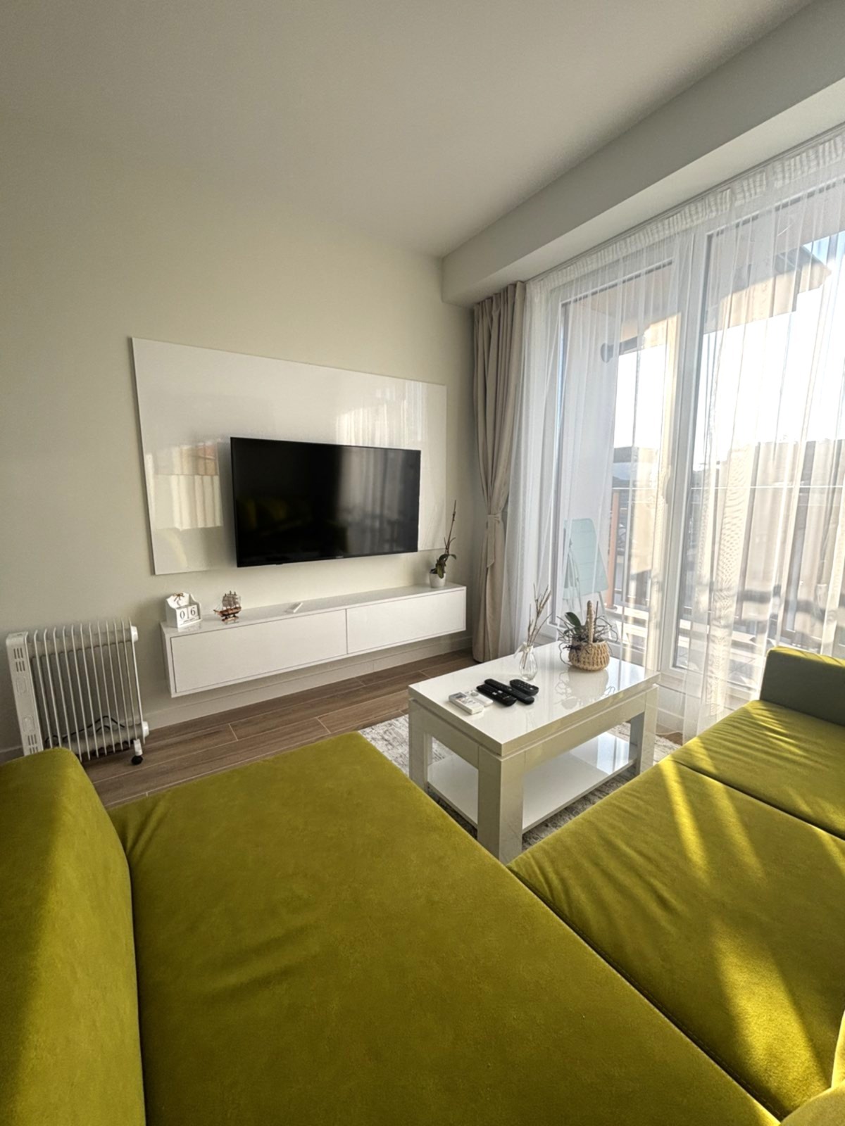 Собственик предлага под наем чисто нов двустаен апартамент, разположен на 5 минути пешеходно разстояние от морския бряг в к.к. Св.Св. Константин и Елена. В близост е Лидъл, супермаркет 24 часа както и автобусна спирка. Апартаментът се намира на пети етаж в нова сграда с асансьор. Жилището се състои от спалня, всекидневна с кухненски бокс, баня с тоалетна и тераса. Предлага се напълно обзаведено и оборудвано с всички необходими уреди. Отопление и охлаждане с два климатика висок клас и ниска консумация на ел. енергия. Не се допускат домашни любимци. В апартамента има инсталирани димни датчици и вътре не се пуши. Отдава се дългосрочно. Наемна цена: 700 евро. В наемната цена е включено паркомясто и такса поддръжка на комплекса. В деня на настаняването се дължи възвръщаем депозит от 1000 EUR.