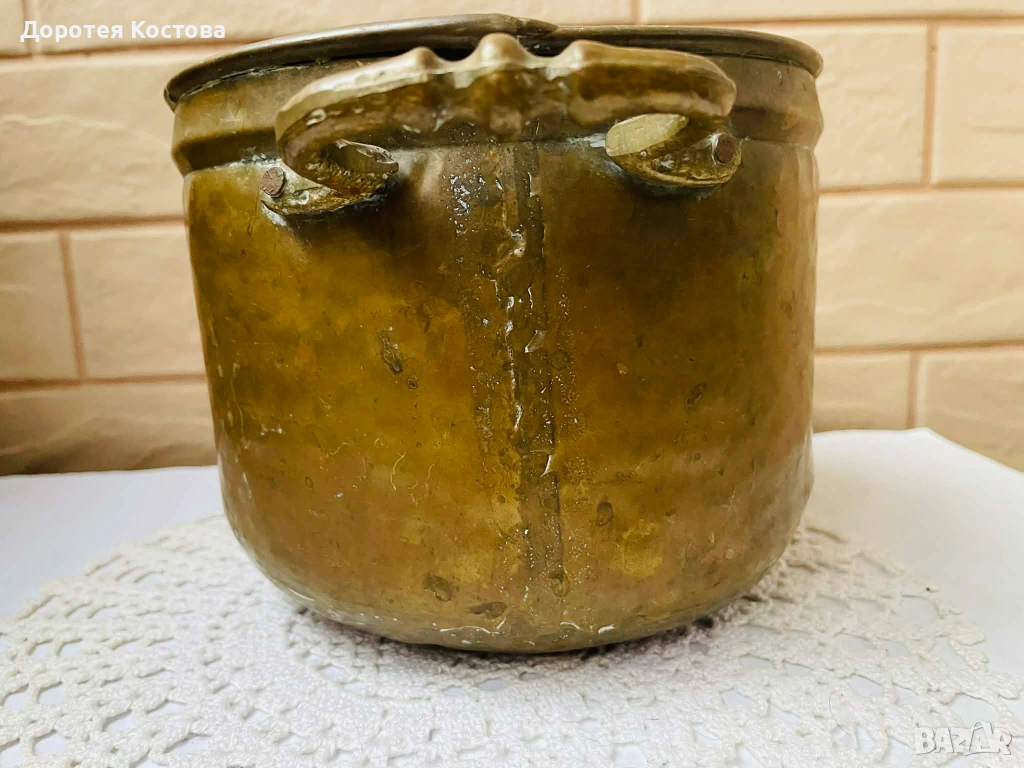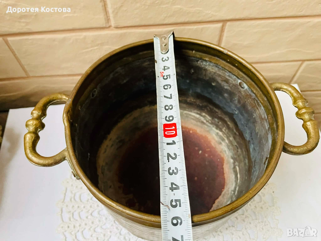 Красива месингова кашпа от Англия, масивна и здрава с 2 дръжки, не е почистена, размерите са на снимките. Цена - 18 евро / 35.20 лв.