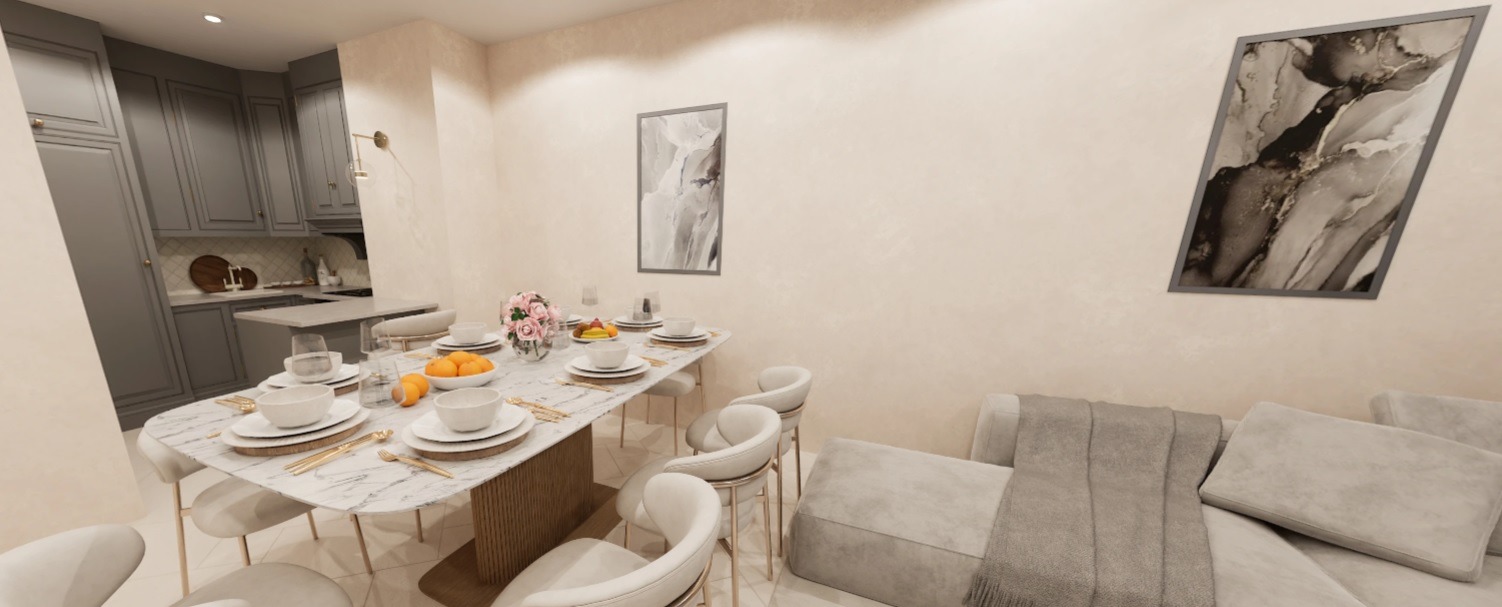 Дневен тракт с кухненски бокс 35 м2 - просторен и светъл, с възможност за обособяване на кът за хранене и зона за отдих