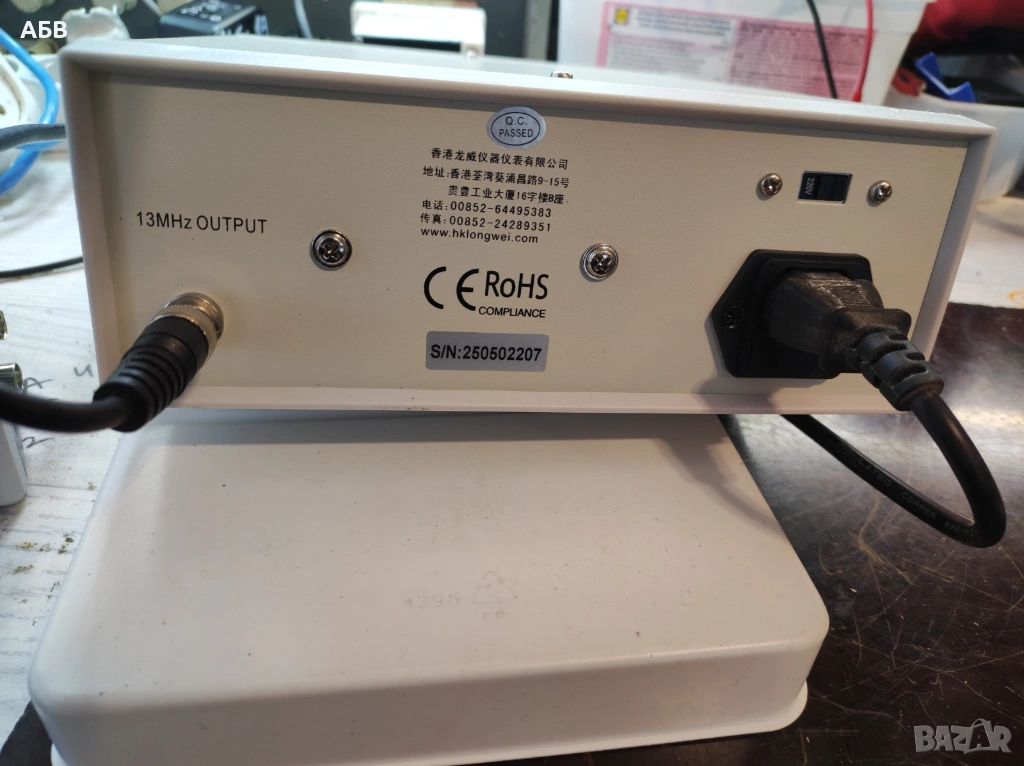 Наличен е контролен изходен сигнал 13МХц, който е изведен на задния панел на BNC букса (2-ра и 3-та снимка).