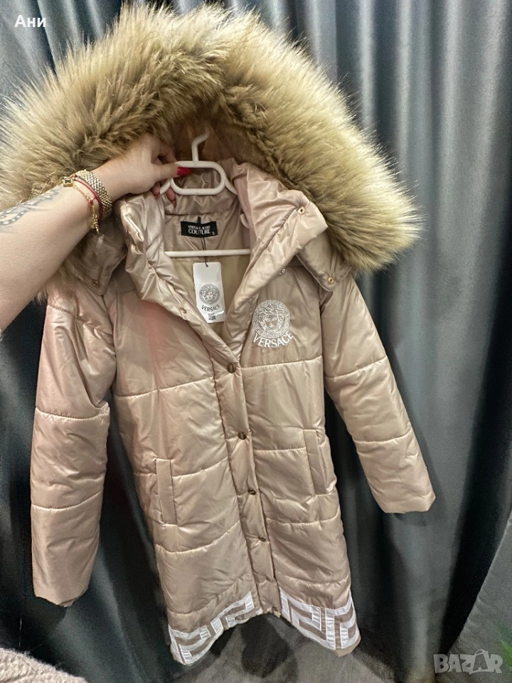 Ново Оригинално дамско дълго яке Versace размер S с естествен пух → Обява 53474248