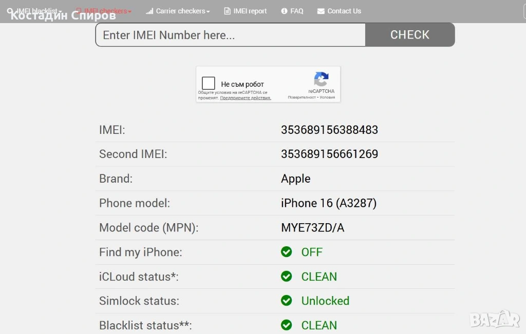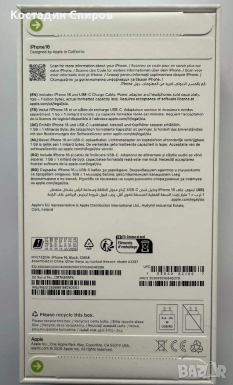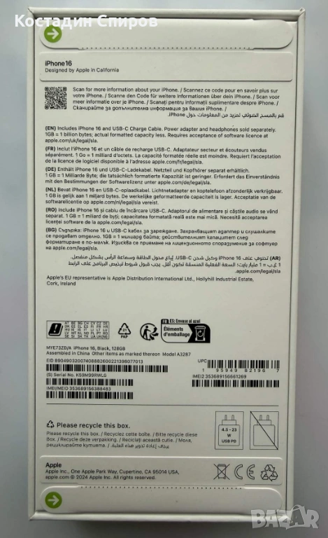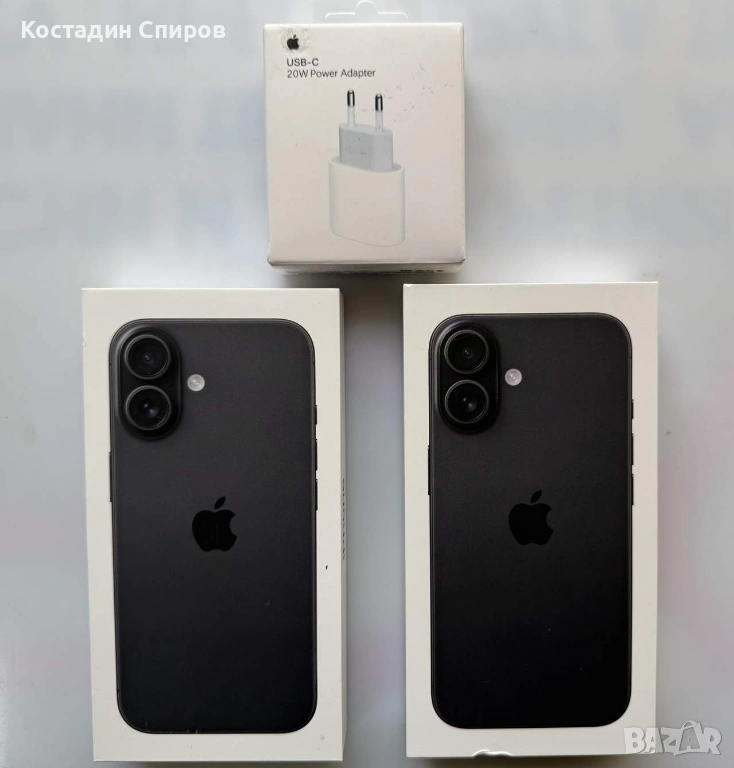 Продавам Apple iPhone 16 128GB. Цвят - черен. Имам налични 2 бр. Телефоните са абсолютно нови - фабрично запечатени. Цена за бр. - 1190 лв. (608 евро).