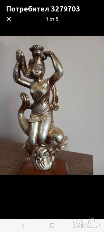 Свещник от метална сплав изобразяващ Афродита върху делфин