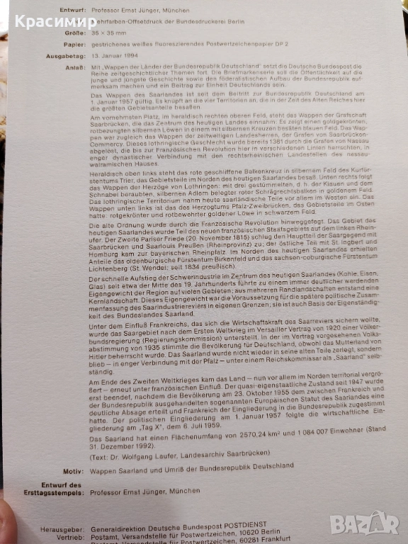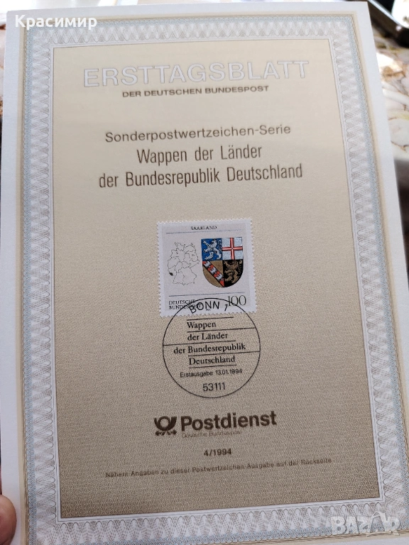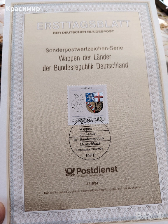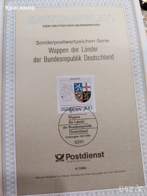ERSTTAGSBLATT 13.01.1994. → Обява 53474646