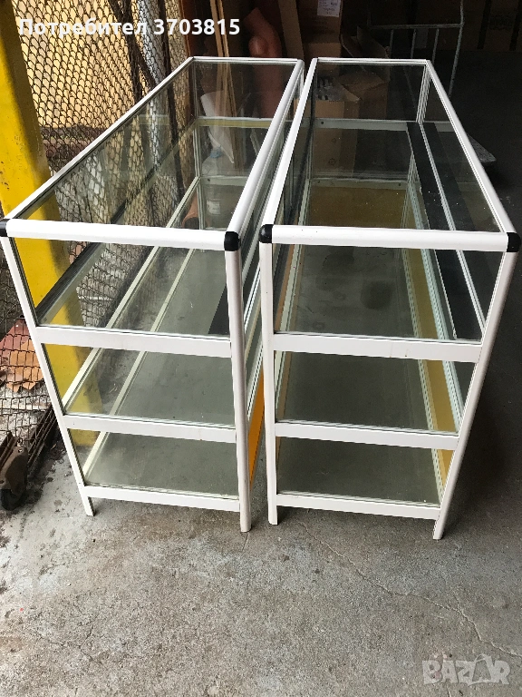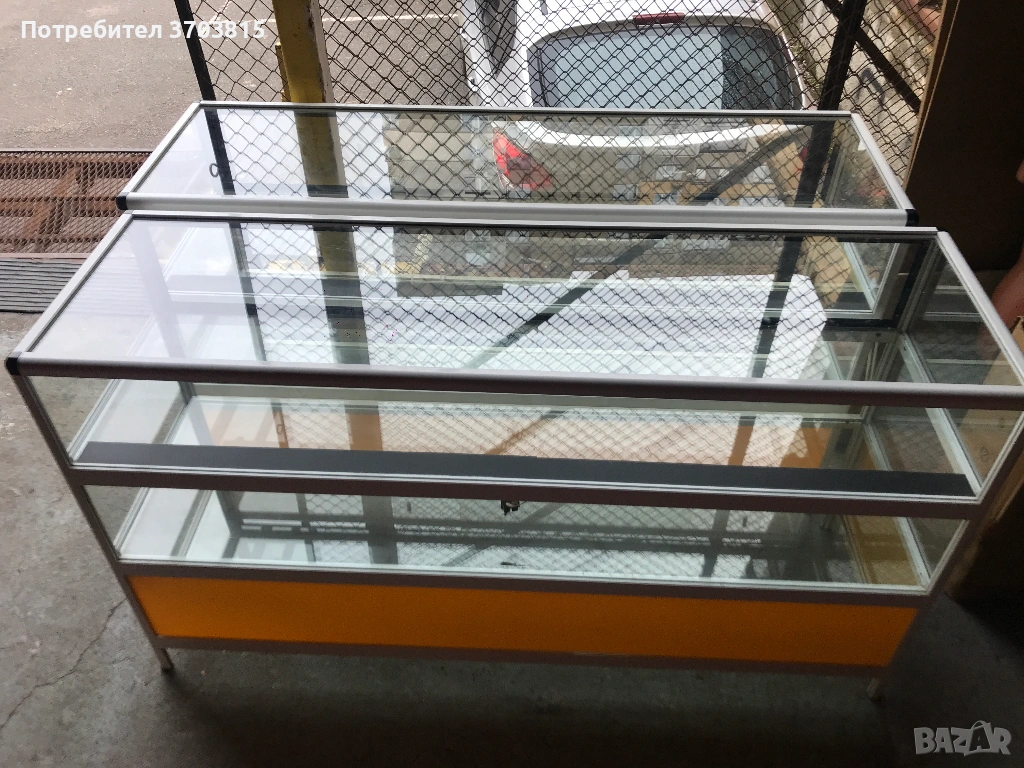 Продавам две запазени щанд маси от алуминии и стъкло. Външен вид-9,5/10.