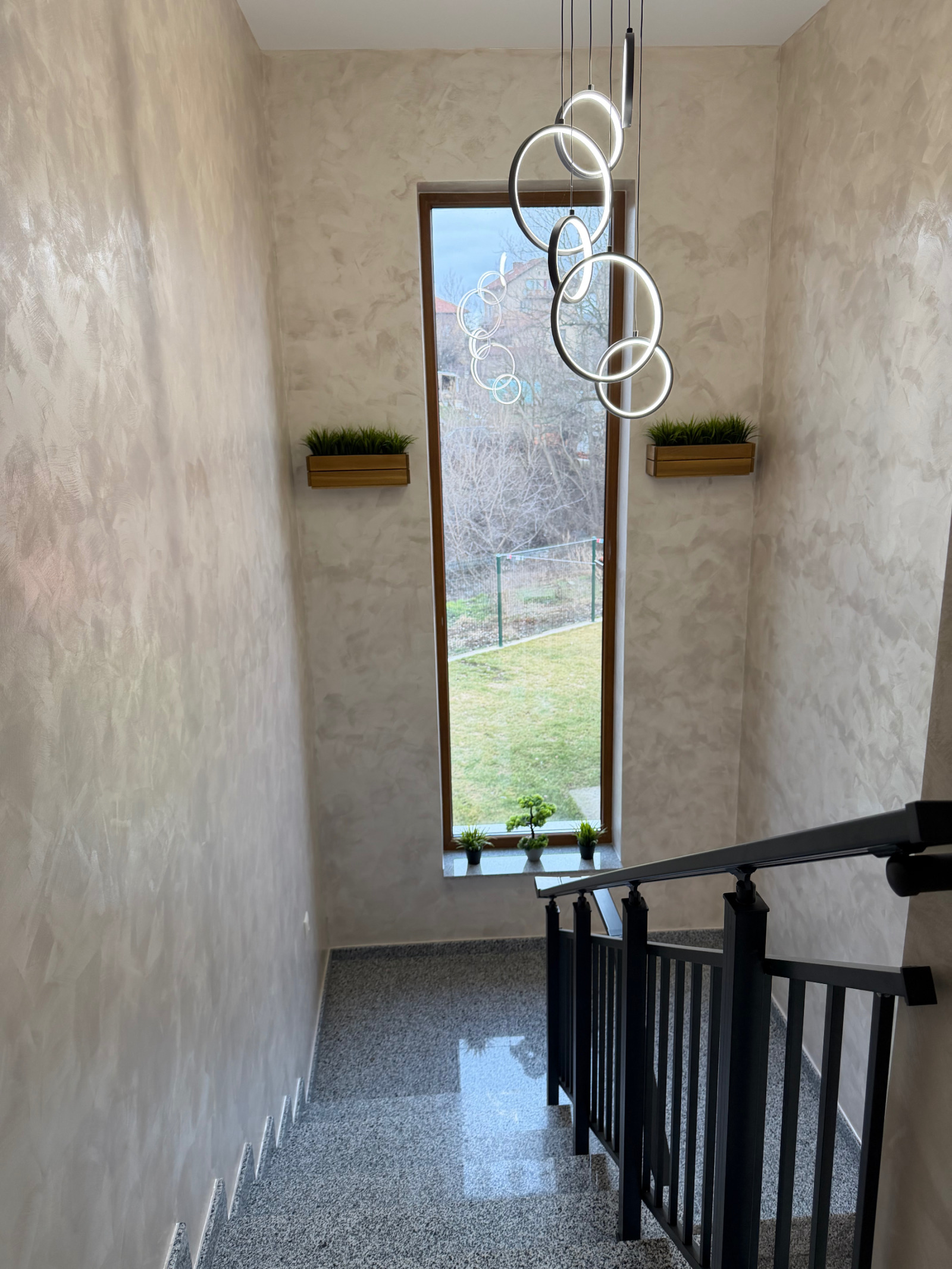 Широко и светло стълбище води към втория етаж.