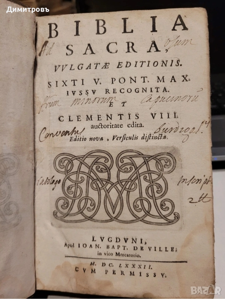 Предлагам на Вашето внимание изключителен екземпляр от Сиксто-Климентинската Вулгата, отпечатан през 1682 г. в Лион (Lugduni).