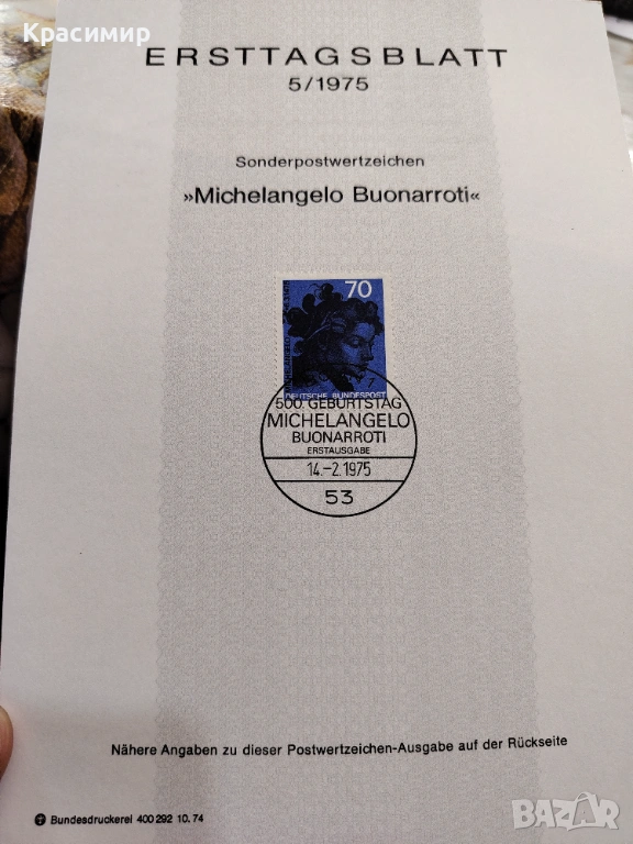ERSTTAGSBLATT 14.2.1975. → Обява 53474861