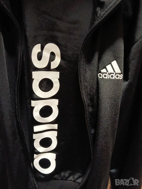 Продавам оригинален мъжки екип анцунг Adidas горнищие и долнище в черен цвят като нови, в отлично състояние - носени само няколко пъти. Екипът е подходящ за всеки повод - ежедневно носене, спорт, разходка и други. Изработен от лек и еластичен полиестер и разполага с удобни джобове на горнището и долнището.
