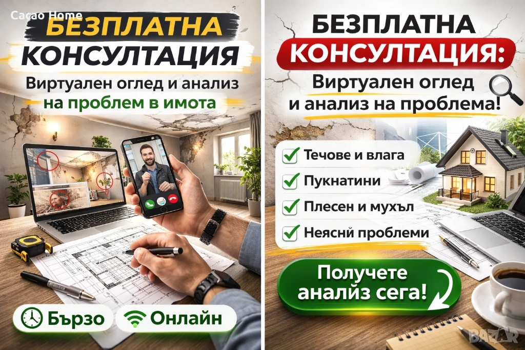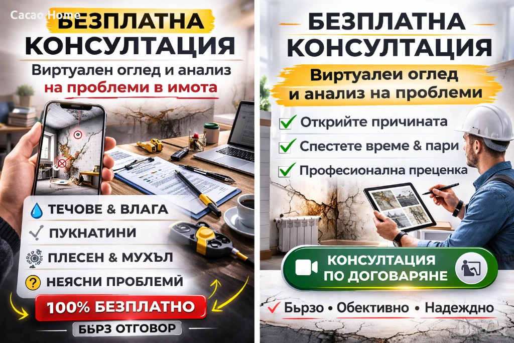БЕЗПЛАТНА КОНСУЛТАЦИЯ: Виртуален оглед и анализ на проблем/щета в имота