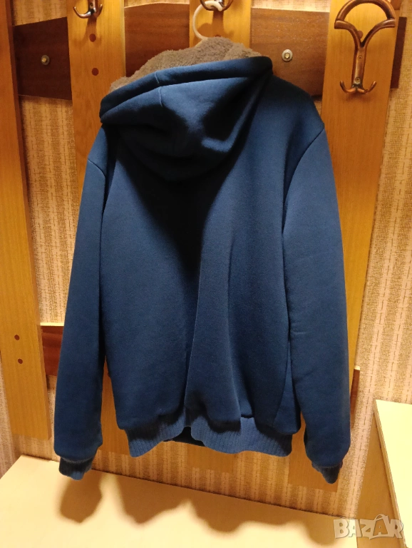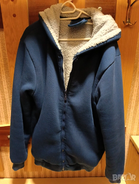 Продавам топъл мъжки суичър в син цвят с мека пухкава подплата, лек и удобен за носене. Моделът е в отлично състояние, подходящ за студените месеци. Закопчава се с цип и разполага с качулка за допълнителен комфорт и защита от студ.