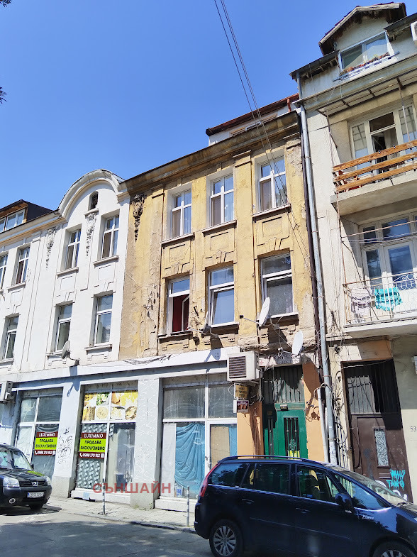 Продава се отделен вход от масивна жилищна сграда, намираща се в идеалния център - на едно от най-оживените места в София-в близост до бул. Мария Луиза и Женския пазар, както и до всички централни ведомства и институции. Състои се от два жилищни етажа, полуетаж, мазе - под целия първи етаж, таванско помещение - над жилищните етажи, с възможност за преустройство в жилища. Идеални части от земята, върху която е разположен имотът. Разпределение: партер - стая със санитарен възел и коридор; полуетаж - две стаи, баня с тоалетна и коридор; първи жилищен етаж - тристаен апартамент, полуетаж - голяма тераса с площ около 25 кв.м.; втори жилищен етаж - четиристаен апартамент; таван 80 кв.м., мазе 80 кв.м. Сградата е паметник на културата от местно значение и е на пешеходно разстояние до две метростанции Лъвов мост и Сердика, както и до трамвайни и автобусни спирки свързващи района с всички квартали /вкл. и летище София/. Имотът е подходящ за хотел, голям магазин, офиси, клиника и др. Възможност за закупуване и на останалата част от сградата.