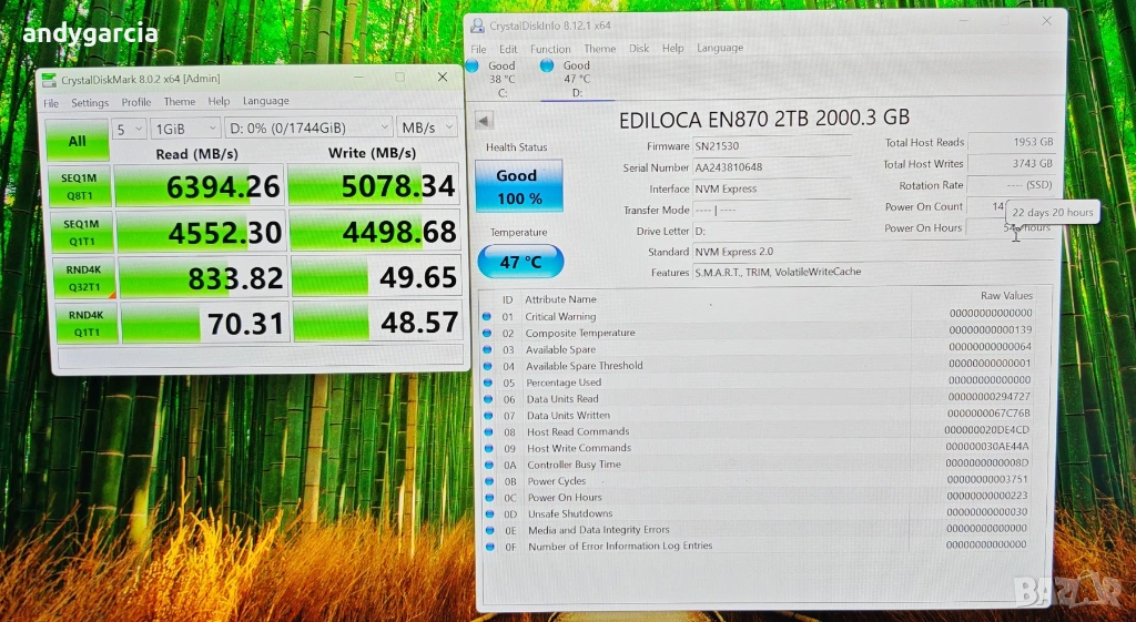 2TB 2000GB Ediloca EN870 M.2 SSD PCle 4.0x4 , Read 7400Mbps, Write 6800Mbps на 22 дни, 100% здраве