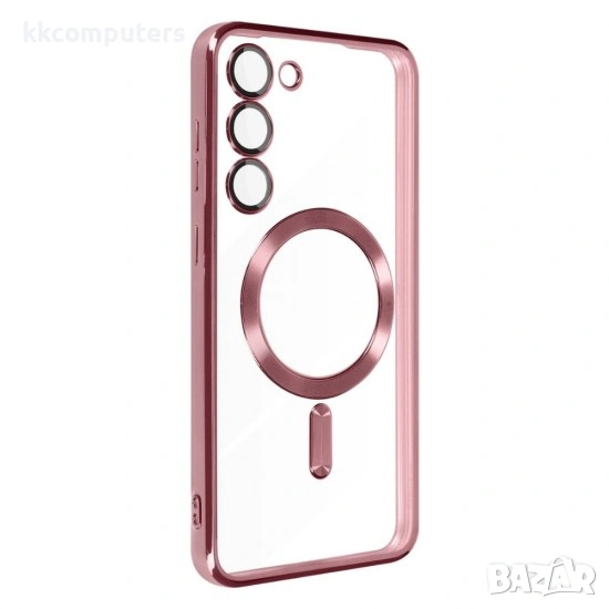 Силиконов кейс bSmart Chrome Magsafe с протектори за камерите, За Samsung Galaxy S26, Розово-златен