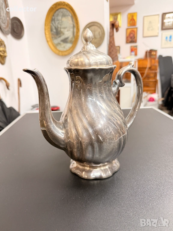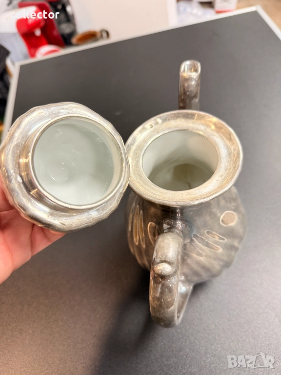 Немски порцеланов чайник със посребрено / сребърно фолио №7866