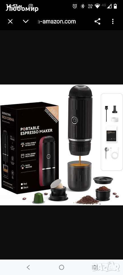 Преносима електрическа машина за еспресо, самозагряваща се, система за екстракция 2 в 1,