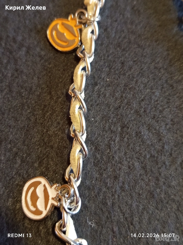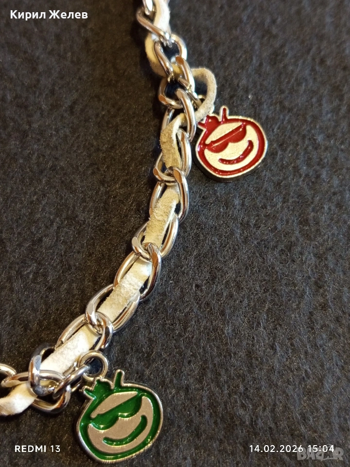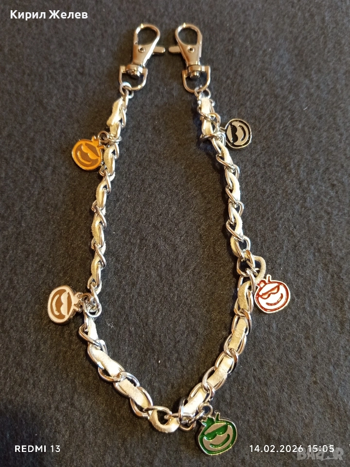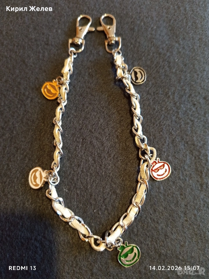 Метална верижка с преплетена кожена лента и висулки усмивка за портфейл, чанта 51809 → Обява 53475907