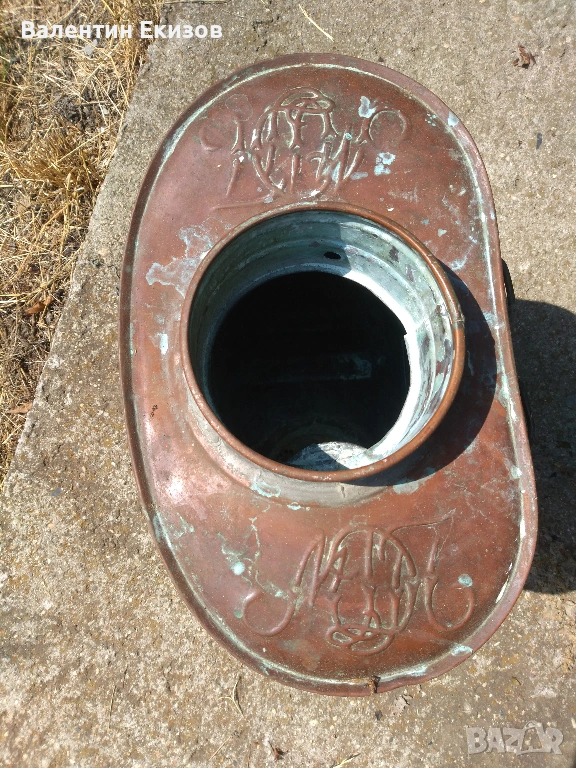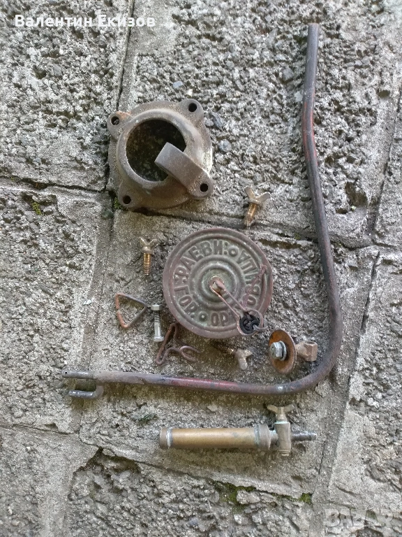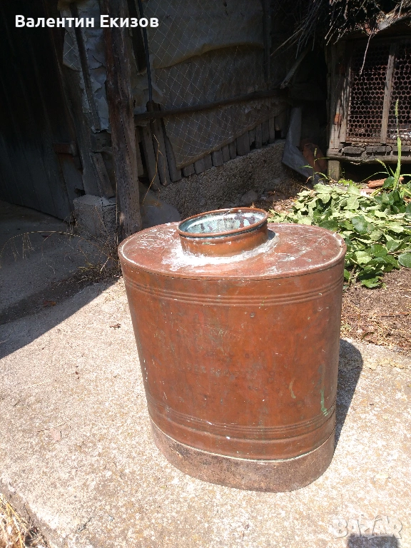 Продавам стара медна пръскачка. Пръскачката е на части. Балона и всички спойки са здрави. Гумените уплътнения са за подмяна.
