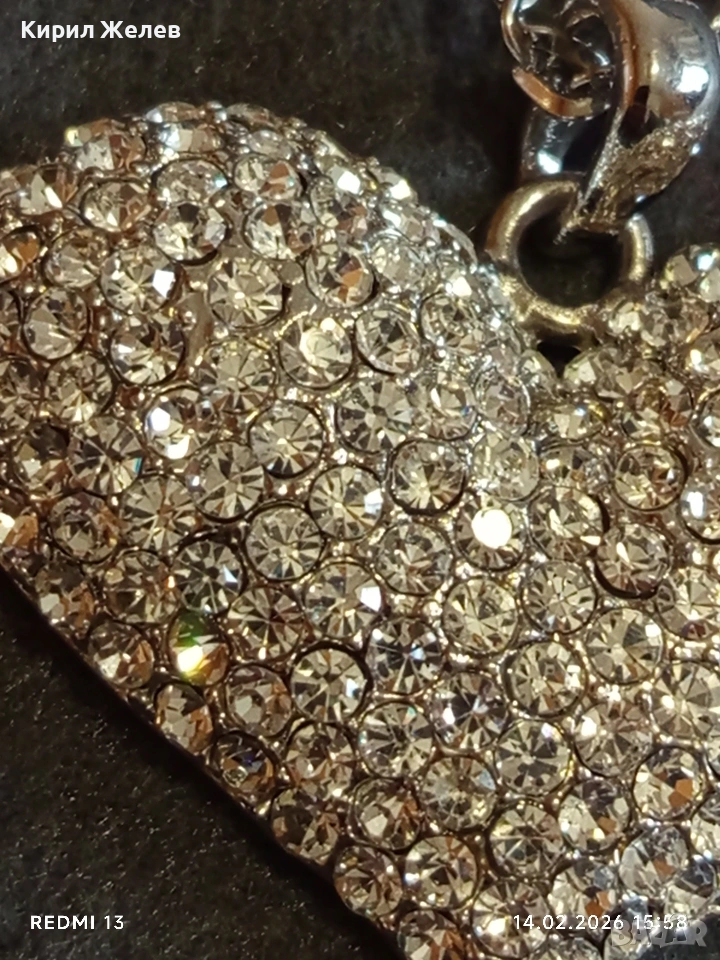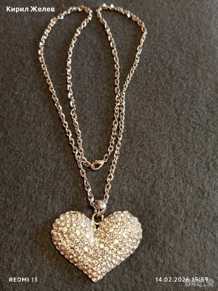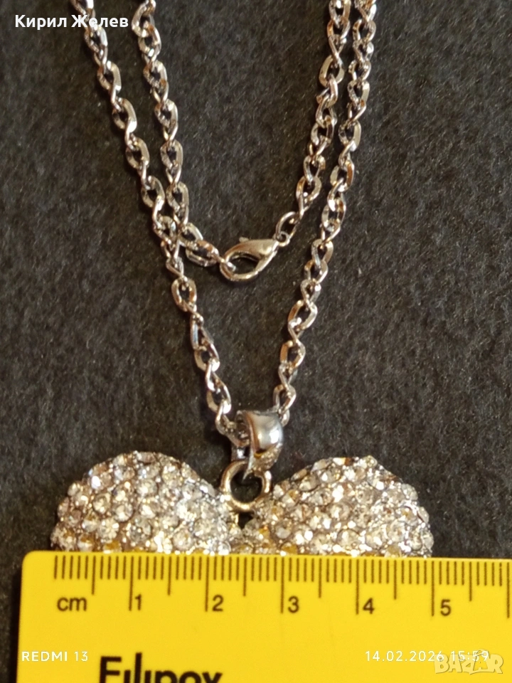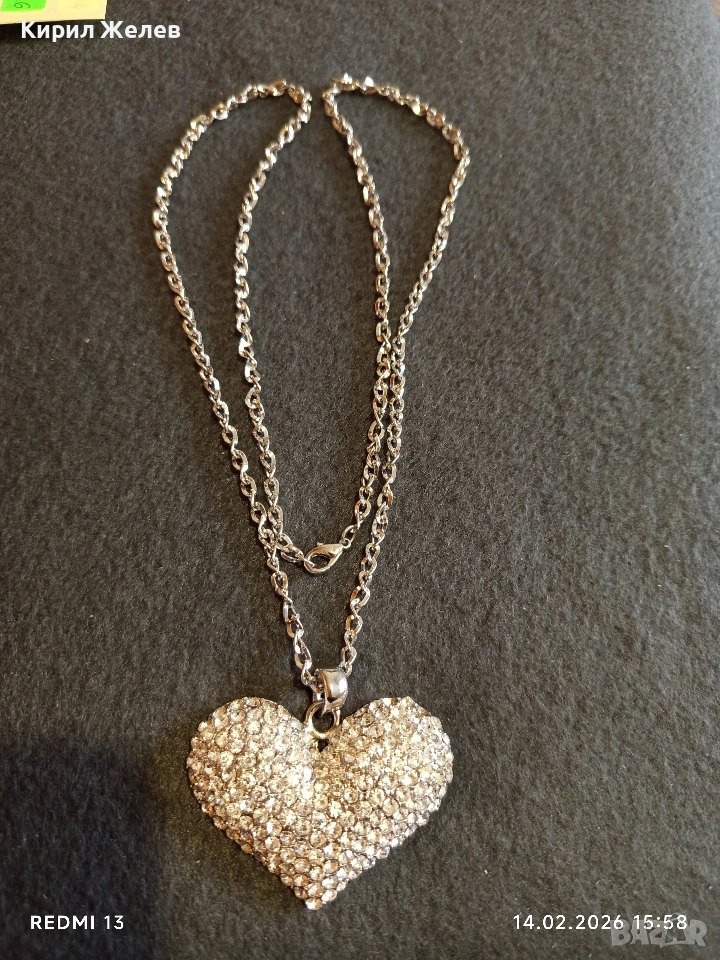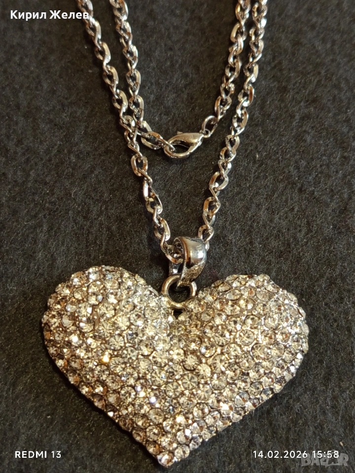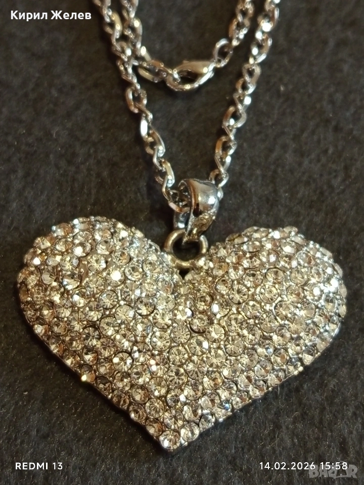 Дамско колие с висулка във формата на сърце ❤️ инкростирано с блестяши кристали 21324 → Обява 53476446
