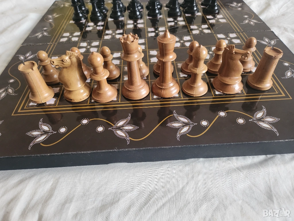 шах и табла - голям 49 х 47,3 см - комплект с фигури/пулове+зарове → Обява 53476467
