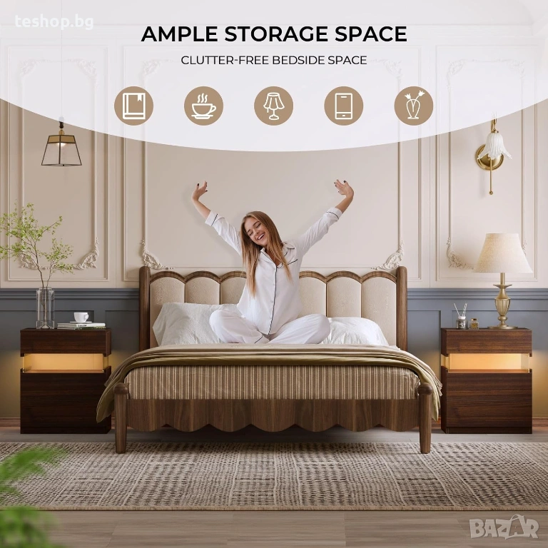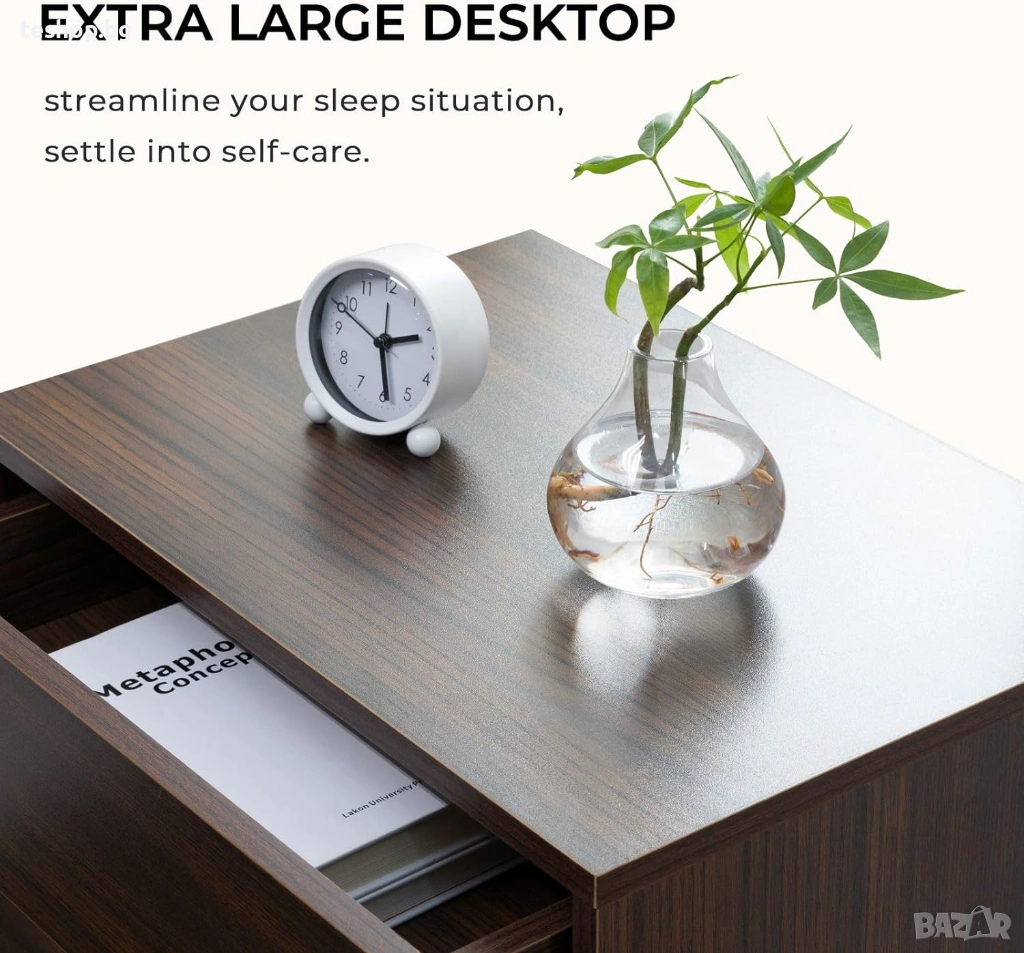 Премиум конструкция с механизъм за безшумно плъзгане: Тази модерна нощна шкафче е изработена от здрава рамка от инженерна дървесина с устойчиво на надраскване покритие, чекмеджетата се плъзгат плавно и тихо с премиум амортисьори, здрава конструкция поддържа до 44 кг разпределено тегло.