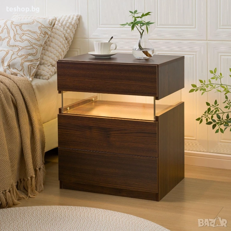 чисто нов комплект от 2 броя нощни шкафчета с лед осветление лукс колекция