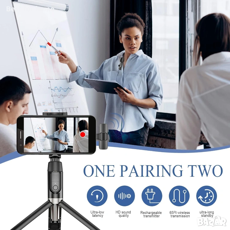 Комплект от 2 безжични микрофона Lavalier за iPhone и iPad