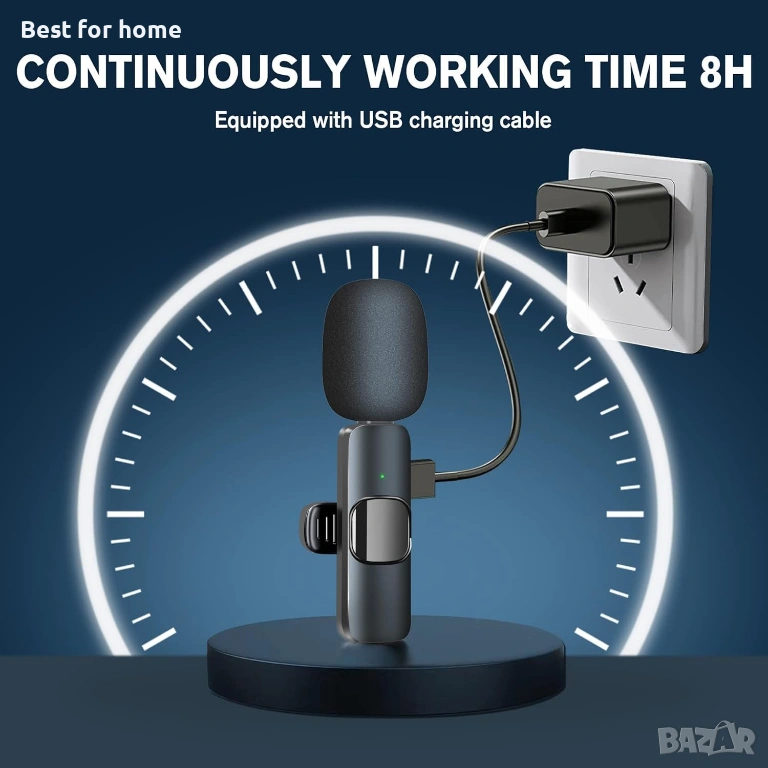 【6 часа работа】Нашият микрофон Lavalier има стабилен аудио сигнал. Висококачественият DSP чип може да осигури по-стабилно предаване. Най-голямото разстояние за безжично предаване може да достигне 65 фута (19,8 м), а вградената акумулаторна батерия с голям капацитет и чип с ниска консумация на енергия осигуряват до 6 часа работа. Безжичният микрофон Lavalier е с вградени акумулаторни батерии от 65 MAH, осигуряващи до 6 часа време за работа, като времето за зареждане е само два часа.