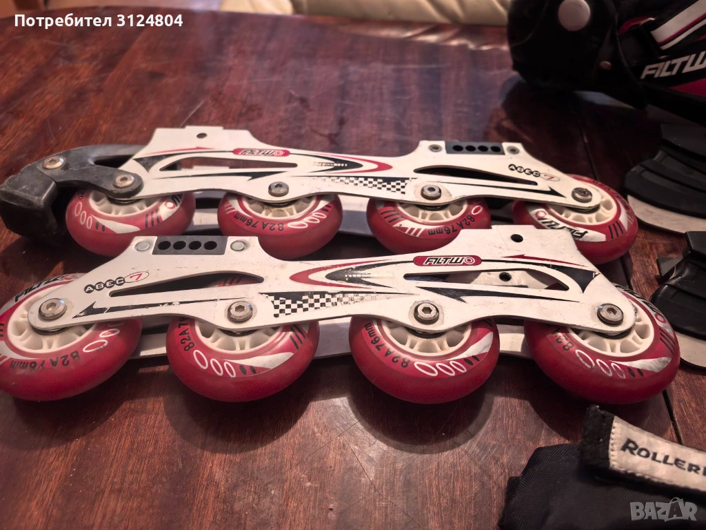 Продават се в комплект ролерите, обувките, кънките за лед и наколенките.