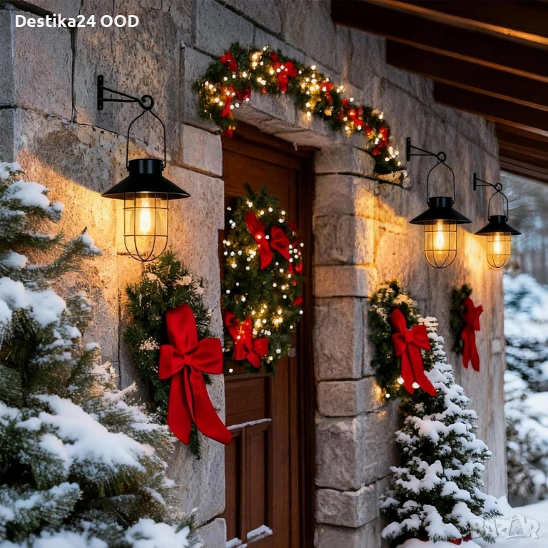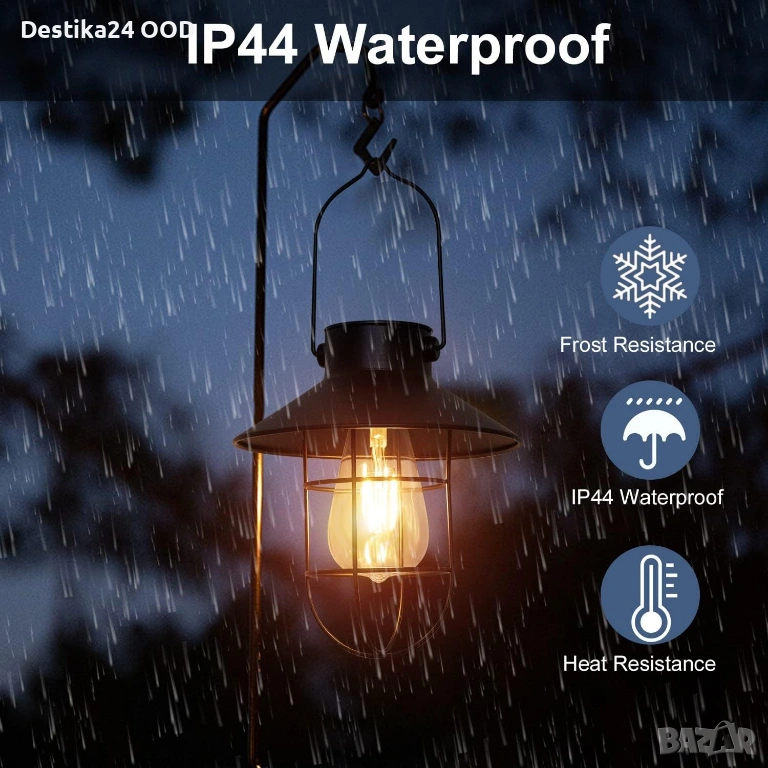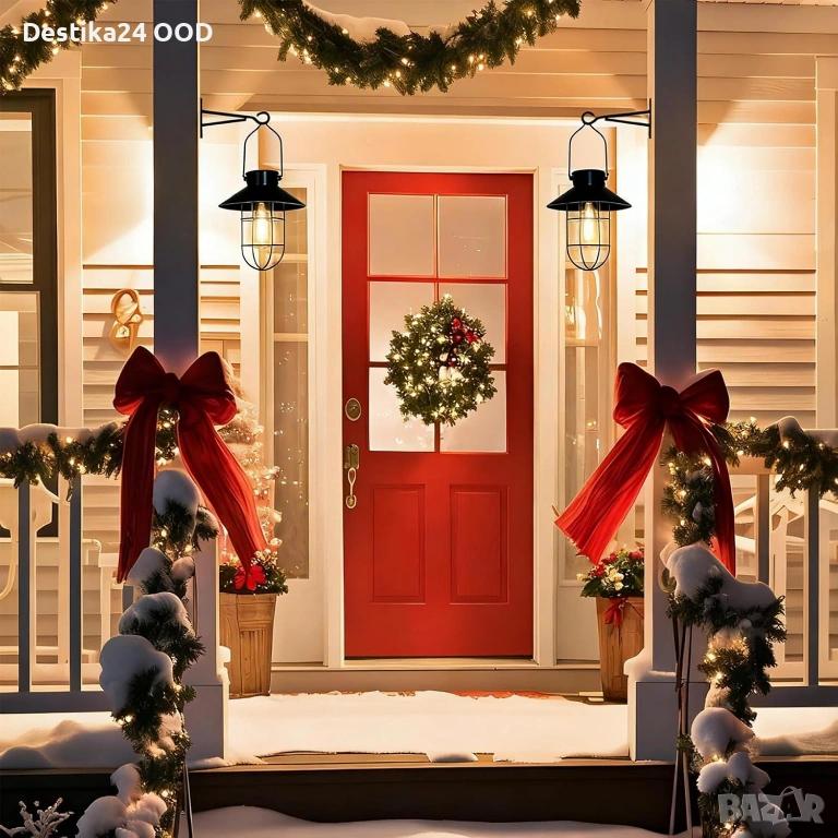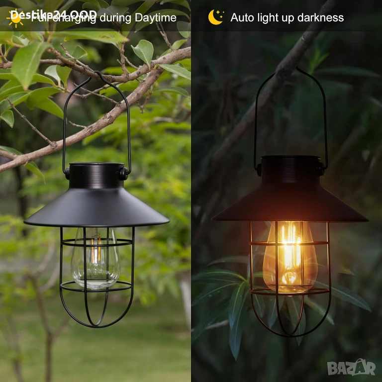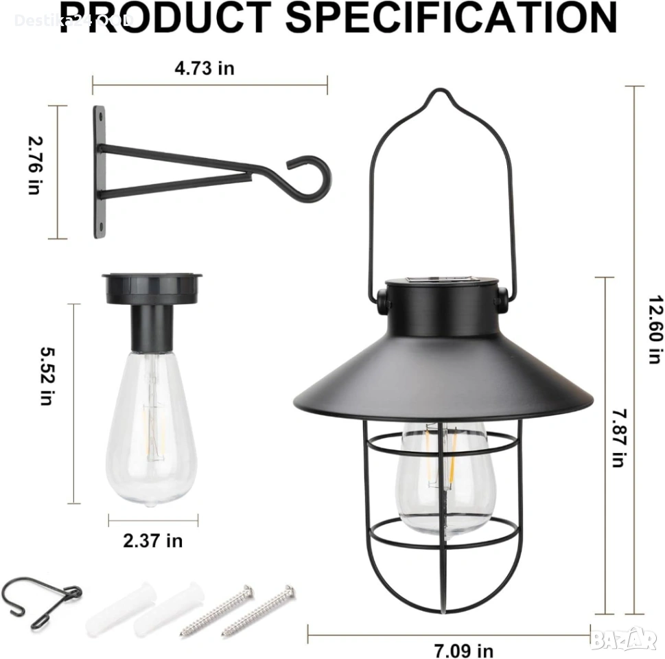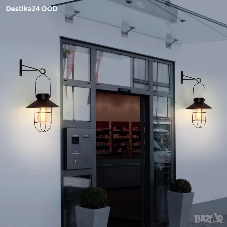 Стилни соларни градински фенери с метален корпус и ретро дизайн. Подходящи за осветление и декорация на двор, градина, тераса, ограда, гараж или веранда.