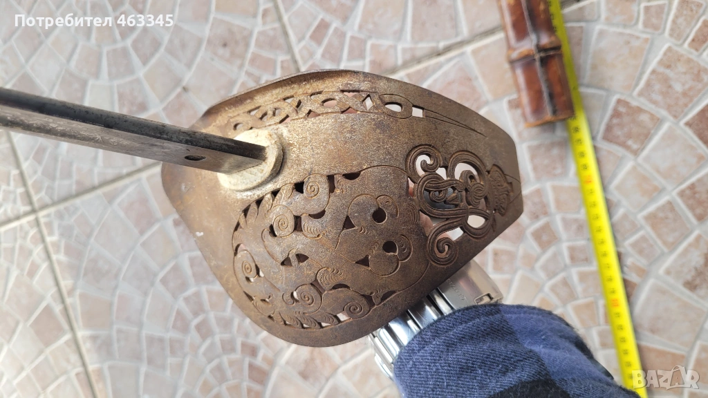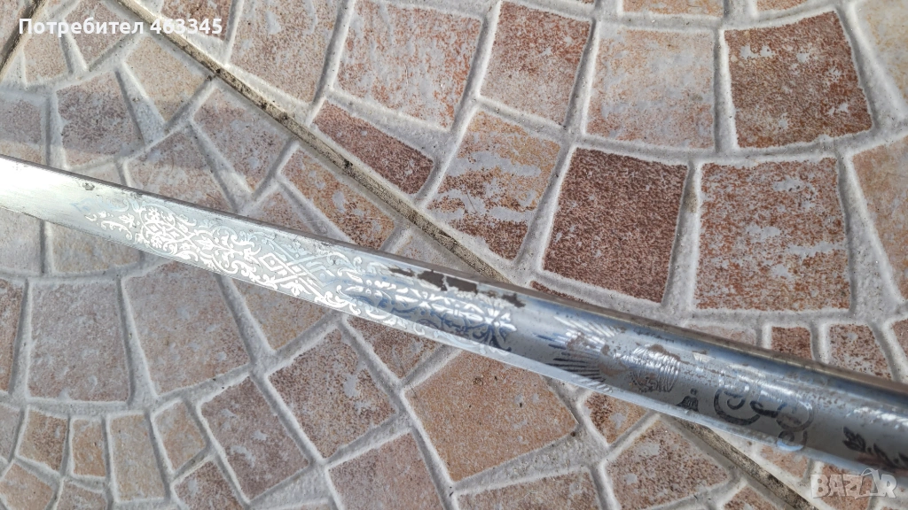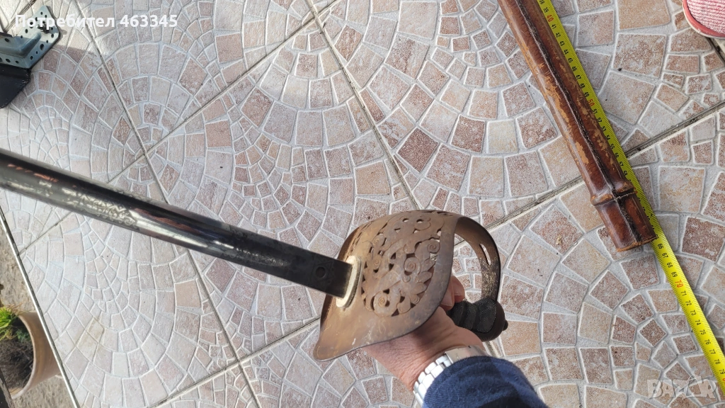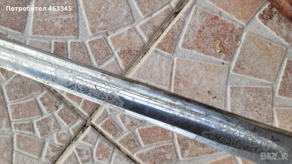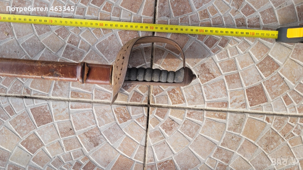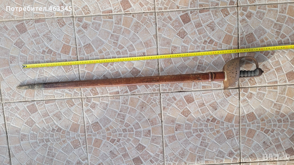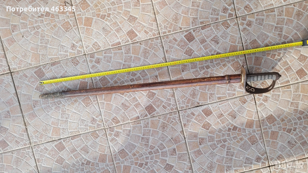 Британска сабя от времето на Джордж V използвана от офицер от леката пехота през Великата Война. Кожена ножна с липсващ връх. Ефесът е покрит с повърхностна ръжда, непочиствана. Острието е почти перфектно, маркирано, с производител и сериен номер. Шагренът е с нормални следи от износване. Непочиствана но гравировката по острието е непокътната. 100% оригинал