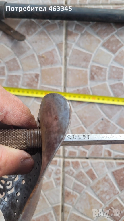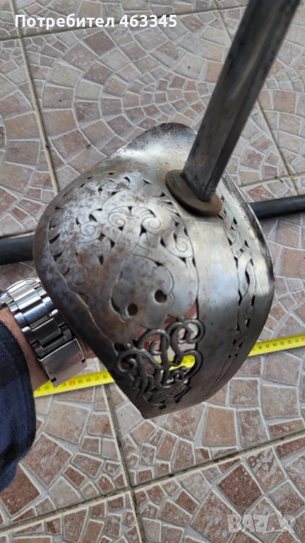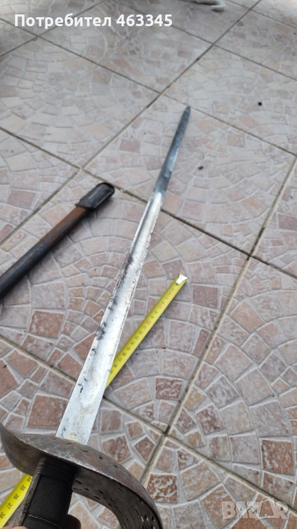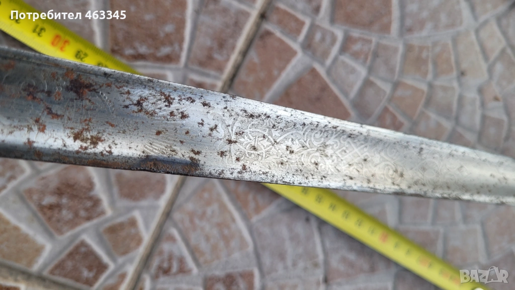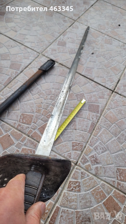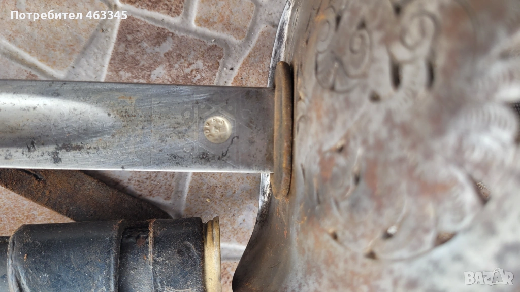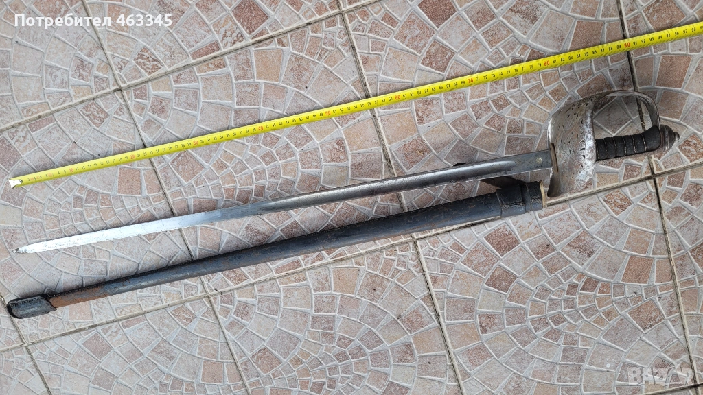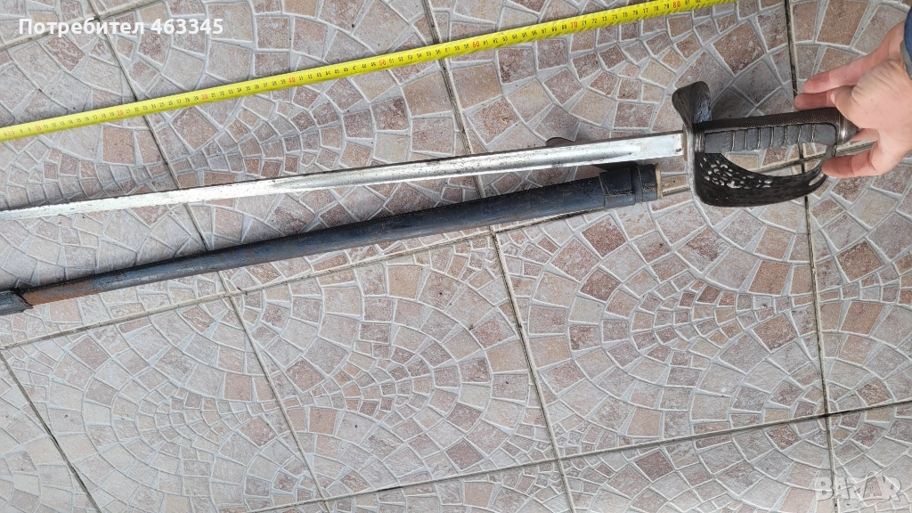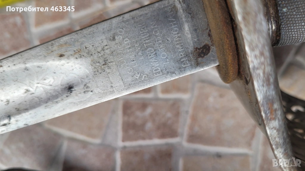 Още един британски пехотен офицерски палаш обр. 1897. Сабята е използване по времето на Първата Световна Война. Маркирана, с производител и сериен номер. Шагренът е в добро състояние, телта е на мястото си. Острието има повърхностна ръжда. Непочиствана. Ефесът е в почти отлично състояние. Налична ножна с кожен връх