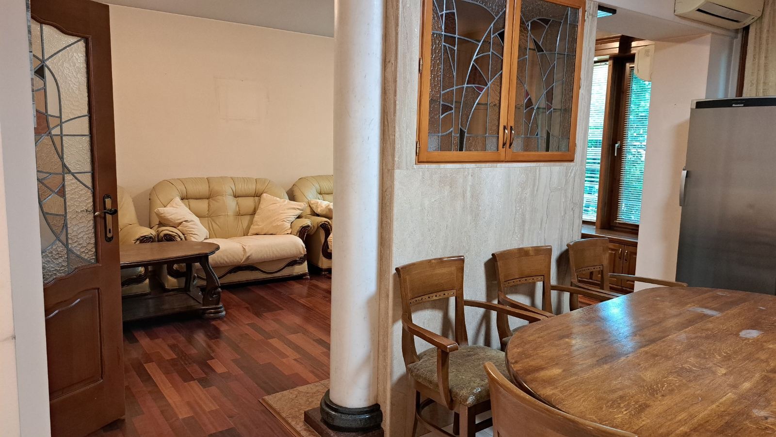 Comfort estate предлага на Вашето внимание четиристаен, тухлен апартамент, състоящ се от входно антре, просторна и уютна всекидневна, трапезария, кухненски бокс, две спални, баня и тоалетна отделно, тераса. Жилището е готово за живеене веднага или за инвестиция с цел отдаване под наем. Продава се във вида, в който е на снимките. Апартамента е разположен е на 4- ти жилищен етаж в малка сграда с добре поддържани общи части и контрол на достъпа. Сградата е без асансьор. Изложение изток- запад. Площ 146 кв.м., от които 110 кв.м. ЧЖП, 10,41 кв.м. общи части, 11,29 кв. м. мазе и 14,49 кв.м таван. Локация- Топ център, близо до Общината.