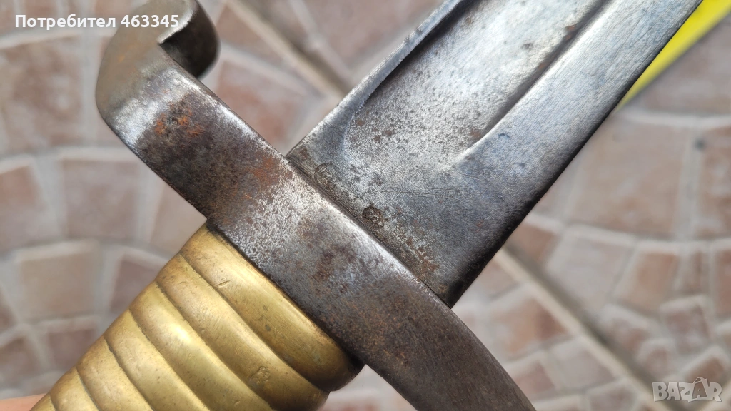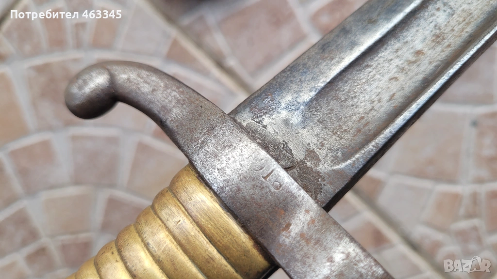 Френски ятагановиден щик обр. 1842 г. Щикът е предшественика на Шаспото. Острието и ефесът са съответно маркирани. Бронзовата дръжка е без подбито и смачкано. Острието е без ръжда. непочиствано и незаточвано. Бутонът работи. Перфектен