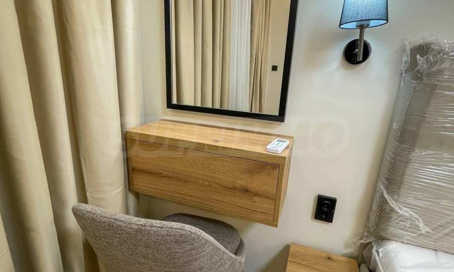 Апартаментът е напълно обзаведен и оборудван с всичко необходимо за живеене като мебели и ел. уреди.