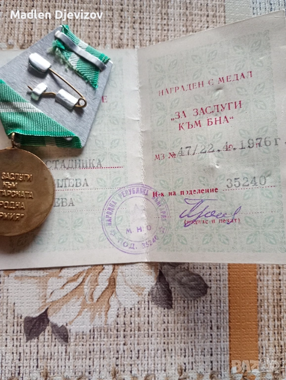 Медал с документ -''За заслуги към БНА -30 → Обява 53477928