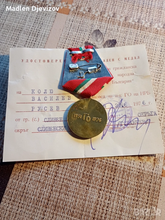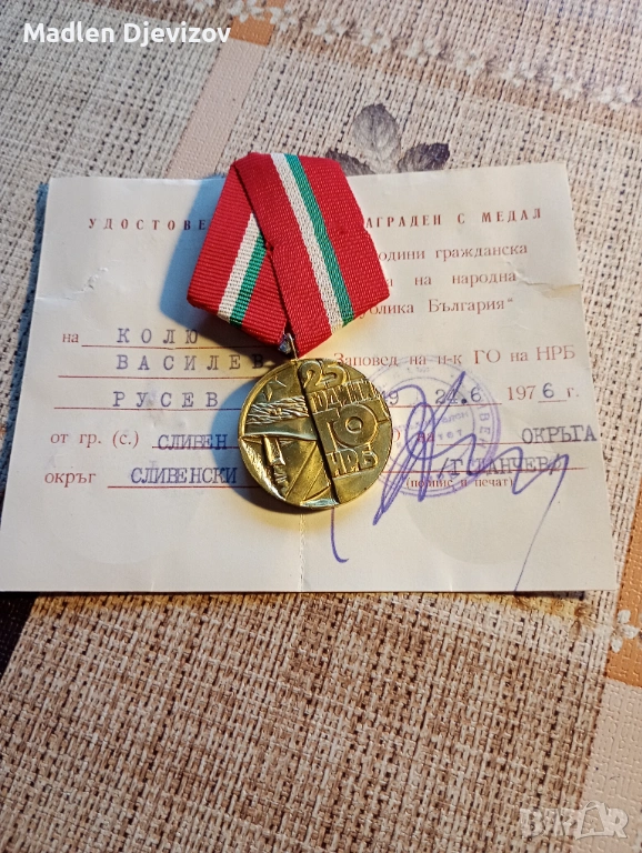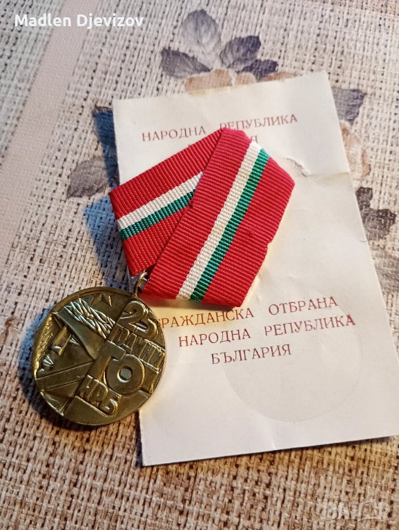 Медал с документ-25 години гражданска отбрана -30 евро