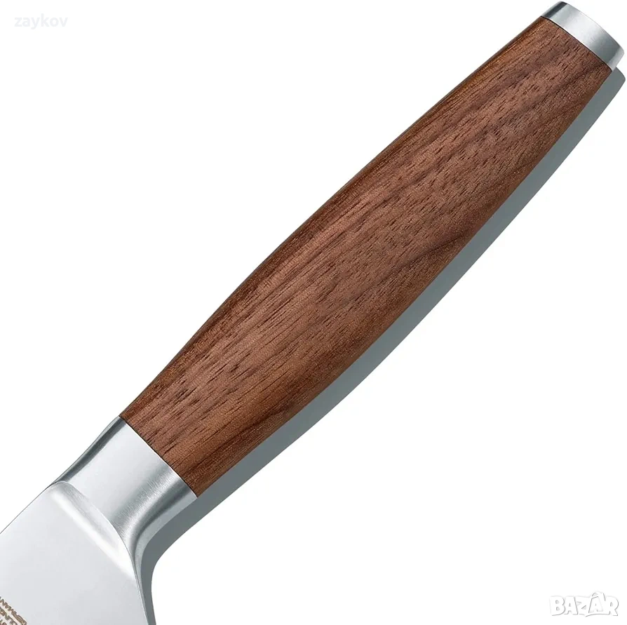 Висококачествена дръжка от истинско дърво - Ергономично балансираната дръжка от орехово дърво не само изглежда добре, но и осигурява сигурен и контролиран захват при рязане.