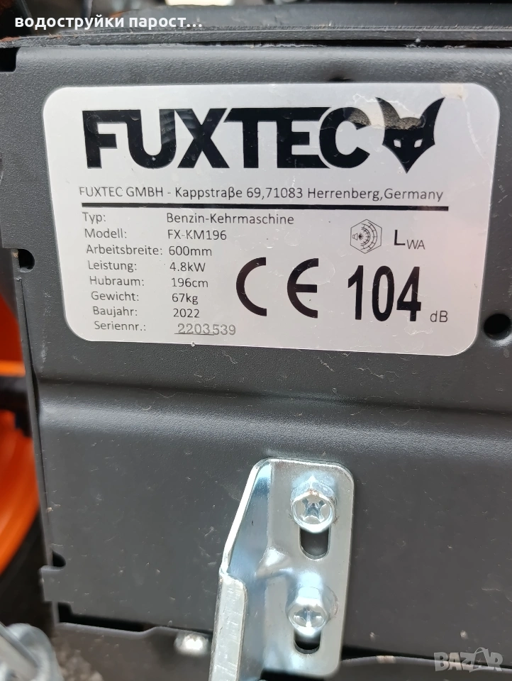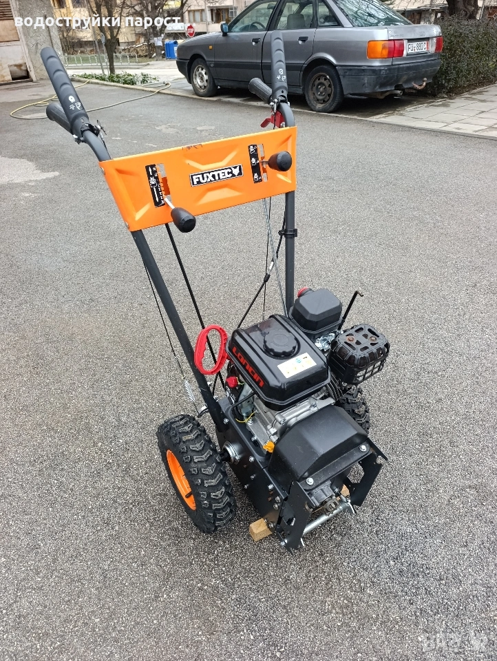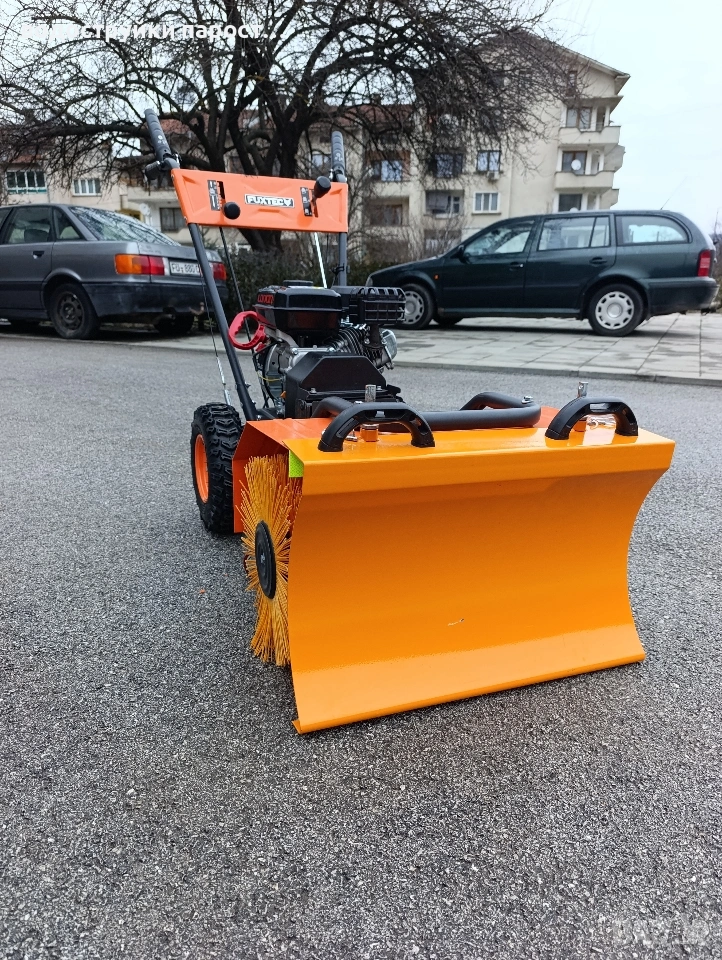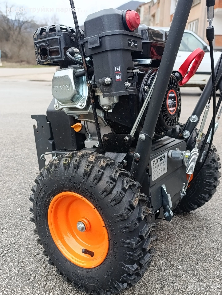 Бензинов снегорин KM196 - 6.5 HP 3в1 Машината е Внос от Германия!!! Бензиновата снегоринна машина FUXTEC KM196 е предназначена за почистване на отпадъци от тротоари, пътища и други площи около дома. Тя отговаря на най-високите стандарти за качество и безопасност и е предназначена за клиенти, които ценят лесната работа и надеждността. Оборудвана с тих, 4-тактов двигател Loncin с мощност 6,5 к.с., машината има работна ширина 60 см. За по-лесна работа, машината е оборудвана с големи колела. Предлагат се пет скорости напред и две задни. Максималната работна площ е 1500 м³/ч. Благодарение на възможността за закрепване на подходящи адаптери (плуг, контейнер за събиране на мръсотия, снегорин), нашето устройство е многофункционално. Работна ширина: 60 см Ъгъл на въртене на четката: +/- 15 градуса Диаметър на четката: 34,5 см Гарантирано ниво на звукова мощност (LWA): 101 db(A) Скоростна кутия: 5 предавки за движение напред + 2 предавки за движение назад Тегло (в кг бруто): 92,5 кг Тегло (в кг нето): 85,5 кг Обем (в куб. см): 196 см Гориво: Бензин (95 октана) Мощност (в kW): 4,1 kW макс. Обороти на двигателя: 3600 об/мин Задвижване: 4-тактов Вместимост на резервоара за масло: 0,6 л Допълнителни приставки: приставка за снегорин Съдържание на резервоара.