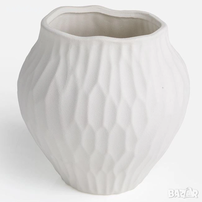 Керамична кашпа - тип амфора, с релефен дизайн.