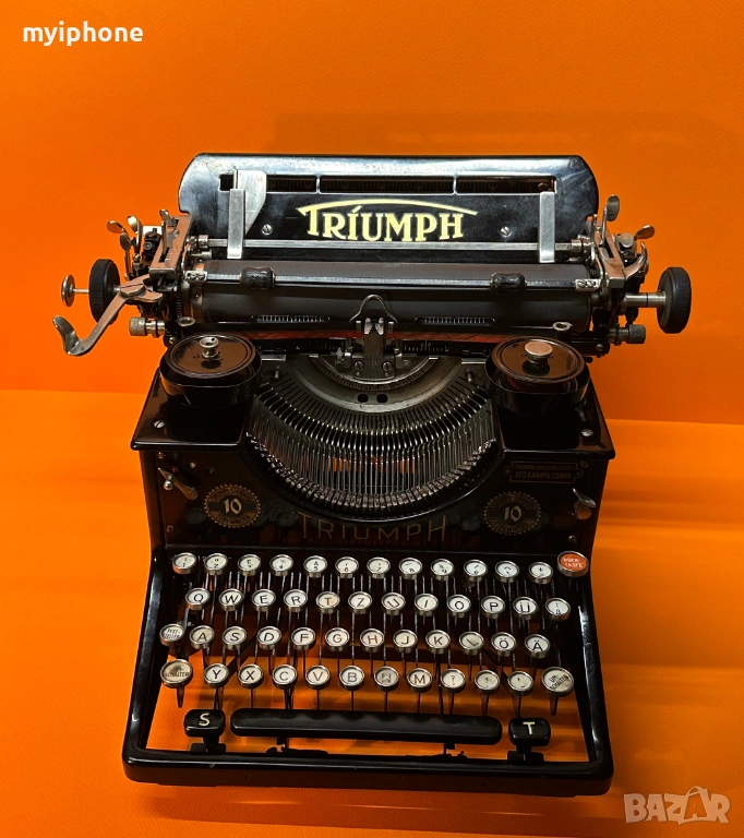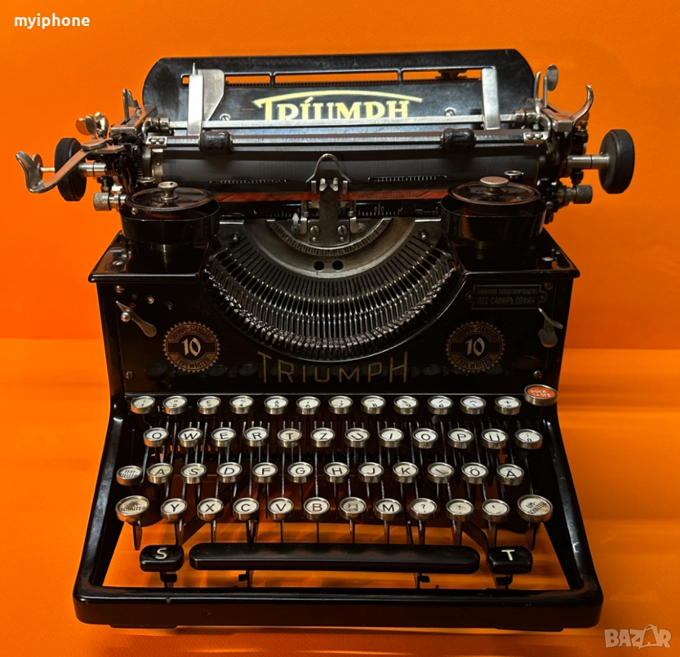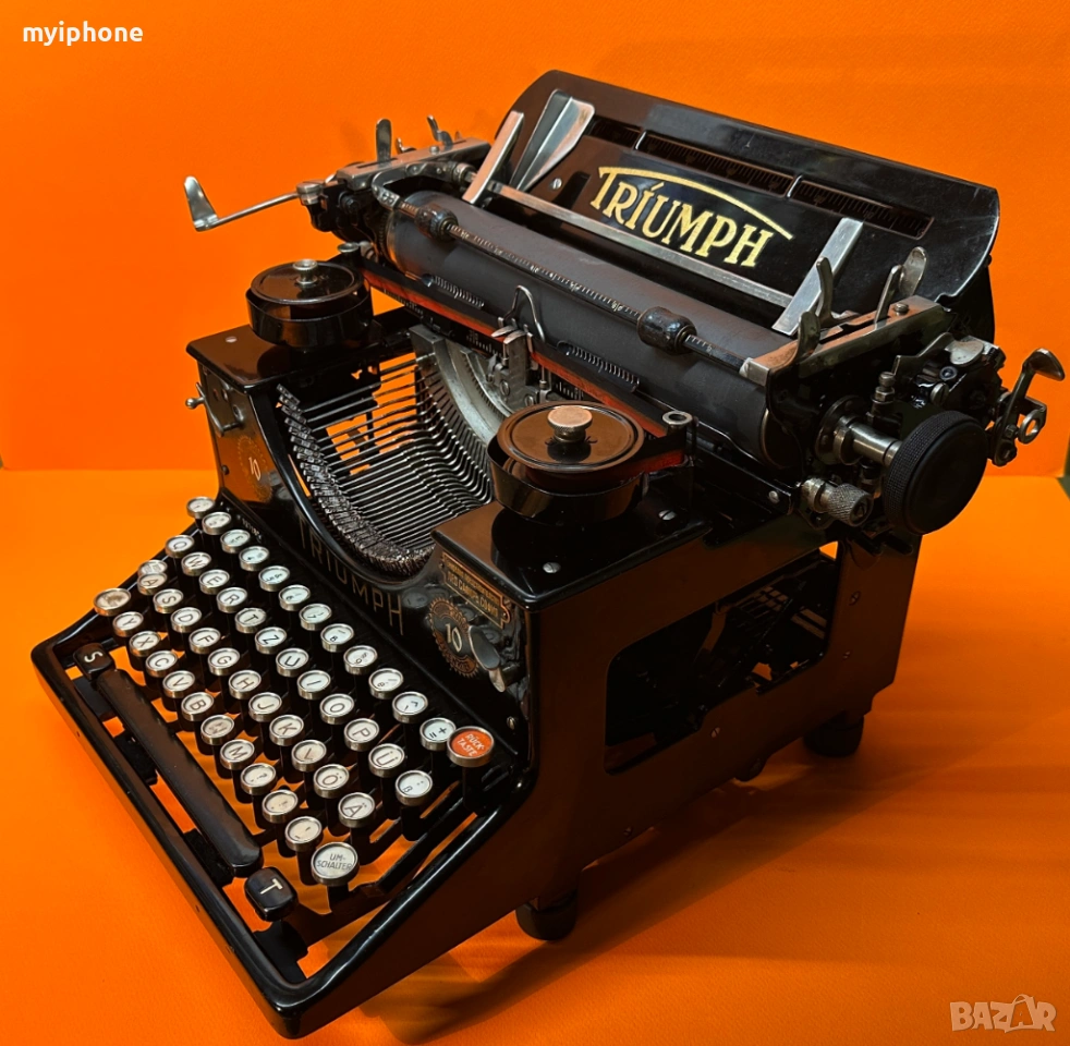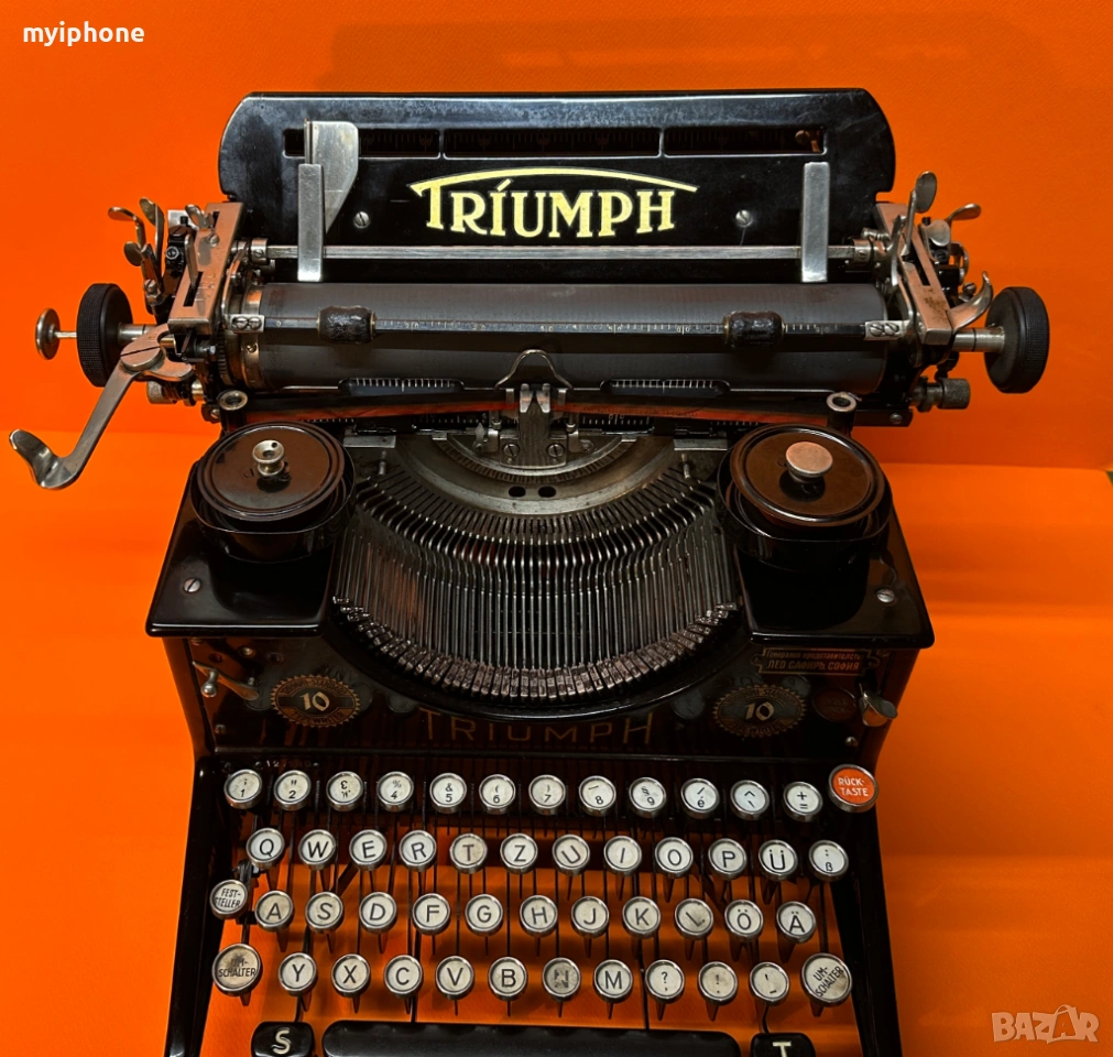 Пишеща Машина TRIUMPH 10 1930 г. за Генерално Представителство Лео Сафиръ София / Напълно обслужена смазана и работеща перфектно на 2 цвята ,сменена лента,qwertz клавиатура топ състояние за годините си,може да се прати клип как работи ! Работим с Еконт 10 % Отстъпка от цената на доставката ! Изпращане същия ден като на другия ден е при вас с опция преглед и тест ако е възможен такъв, допълнително договаряне за друг ден за доставка. Нужни данни за поръчка 1. Име и Фамилия 2.Телефонен номер 3.Град и Офис на Еконт до който искате да се достави или точен адрес за доставка до дома ви / За София възможно взимане от място след уговорка / Изпращане с Еконт / Доставяне от нас в рамките на София Цена 15 €.