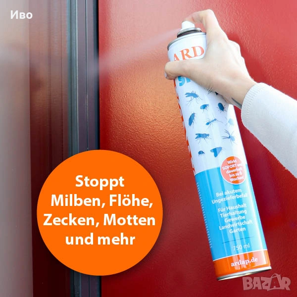 Универсална подготовка за борба с вредители и мухи с незабавни и дългосрочни ефекти до 6 седмици. Хранене и контакт с инсектицид за употреба срещу всички видове мухи, двукрили птици и други вредители или вредители, като бръмбари, акари, кърлежи, бълхи, хлебарки, молци, комари, сребърни рибки, паяци, мокрици, мравки, оси и др. в битови и търговски зони и в животновъдството (гълъбарници, клетки за птици, къщи за животни и др.) С универсалния спрей за паразити ARDAP ветеринарите и потребителите разполагат със средства във всяка ситуация, които могат да се използват незабавно и са ефективни. За по-големи площи и конюшни използването на концентрат ARDAP в препоръчаното разреждане е идеално.