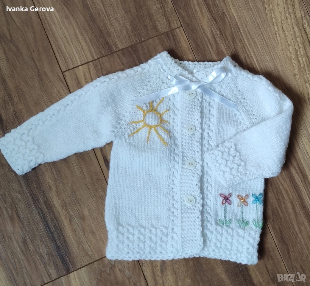 Ръчно плетено бебешко жакетче, украсено с бродерия → Обява 53479065
